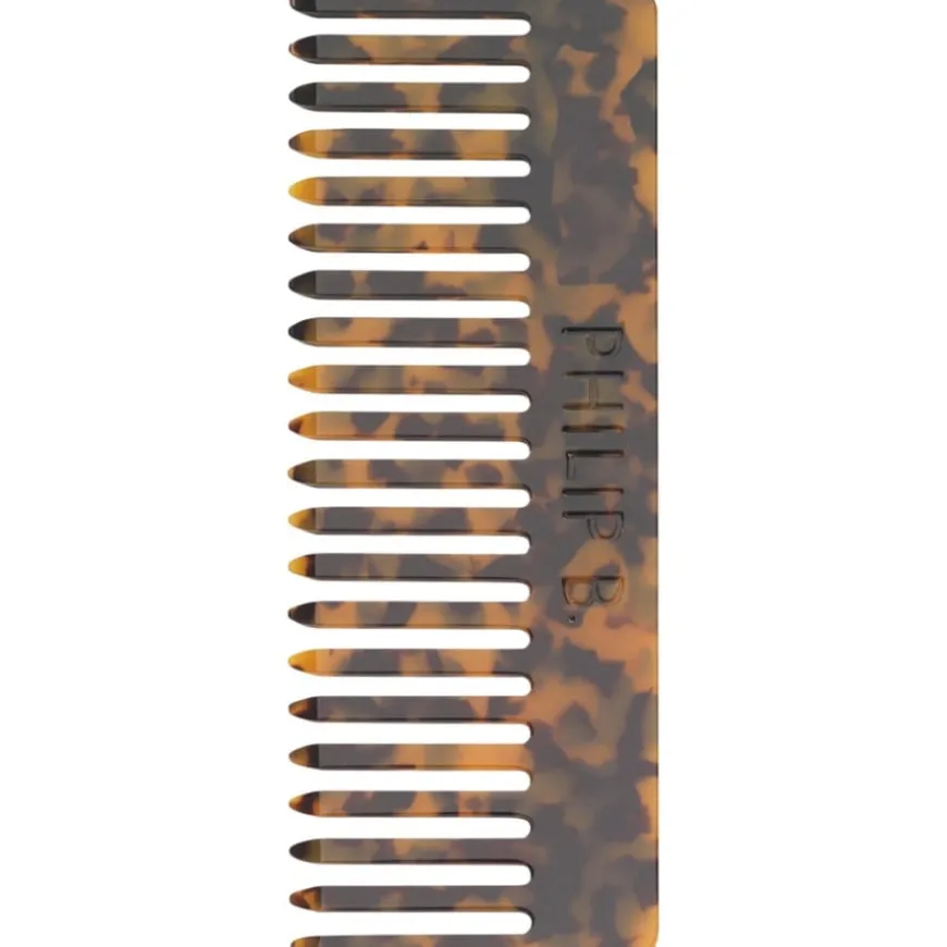 Philip B fertigt Bürsten & Kämme nach Premium-Maßstäben. Dazu gehört es auch, bei der Produktkonzeption auf nachhaltige Materialien zu setzen. Die aus Zelluloseacetat gefertigte Kammplatte lässt sich biologisch abbauen und belastet somit nicht die Umwelt. Gleichzeitig ist das Material strapazierfähig und gilt als ausgesprochen langlebig. Der Detangling Comb eignet sich für glattes, welliges, lockiges und krauses Haar gleichermaßen. Führen Sie ihn einfach sanft und gleichmäßig – stets in ein- und derselben Richtung – durch Ihre Frisur. Das zuverlässige Entwirren übernehmen die groben Zinken dabei in Eigenregie.