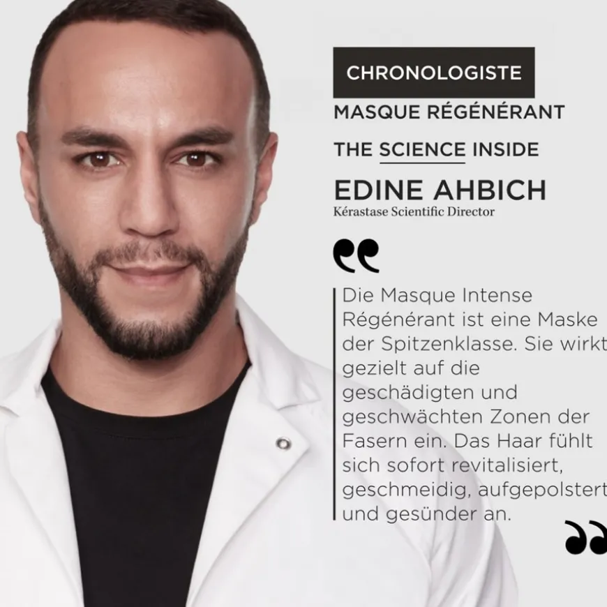 Bisweilen muss man der Natur unter die Arme greifen. Gerade die Haare sind fortwährend negativen Einflüssen wie Wind, Regen und heißer Föhnluft ausgesetzt und wollen oft nicht so richtig mitspielen. Damit Ihre Mähne glänzt, wenden Sie einmal pro Woche die Chronologiste Masque Intense Régénérant an. Diese innovative Pflegemaske regeneriert die Haarfaser und sorgt dafür, dass die Haare geschmeidig und zugleich strapazierfähig werden. Sie ist mit Hyaluronsäure und Vitamin E angereichert, wodurch Ihre Mähne mit Feuchtigkeit versorgt wird. Tragen Sie die Maske auf das handtuchtrockene Haar auf und lassen Sie sie fünf bis zehn Minuten einwirken.