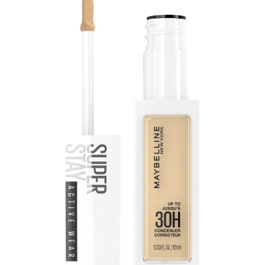 Mit dem innovativen Komfort-Kurven-Applikator lässt sich der Concealer schnell und einfach auftragen. So sorgt der Super Stay Active Wear Concealer von Maybelline New York für einen ebenmäßigen und strahlenden Teint mit einem natürlichen matten Finish. Er steht in drei verschiedenen Farbtönen zur Verfügung: Ivory, Light und Sand. So kann der Farbton optimal der natürlichen Hautfarbe angepasst werden. Tipp: Auch unter den Augenbrauen auftragen. So wird das Auge optisch geöffnet und der Blick wirkt strahlender. Auf dem Nasenrücken aufgetragen, lässt er die Nase schmaler erscheinen.