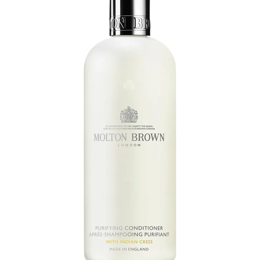 Der Molton Brown Purifying Conditioner With Indian Cress basiert auf rein pflanzlichen Inhaltsstoffen und eignet sich für jeden Haartyp. Er befreit Haare und Kopfhaut von Schmutz und Talg und sorgt so dafür, dass Pflegestoffe besser in sie eindringen und optimal wirken können. Der erfrischend nach Geißblatt, Sandelholz und Jasminblüten duftende Conditioner enthält Aminosäuren, welche die aufgeraute Schuppenschicht der Haare wieder anlegen – das Haar wird geglättet, ist geschmeidig weich, lässt sich leicht kämmen und erhält einen schönen Glanz. Die in dem Conditioner enthaltene Kapuzinerkresse stimuliert zusätzlich die Haarwurzeln und regt das Haarwachstum an. Ihre Haare wachsen kräftiger nach und sind gesund und widerstandsfähig.Molton Brown wurde in den 1970er-Jahren in London gegründet und spezialisiert sich auf Pflegeprodukte, die auf rein natürlichen Inhaltsstoffen basieren. Anfangs stellten die Gründer ihre veganen Produkte im Keller ihres Pflegesalons her; heute werden die Pflanzen in speziellen Tunneln hydroponisch angepflanzt, wodurch wesentlich weniger Wasser verbraucht wird und mehr Nährstoffe erhalten bleiben.