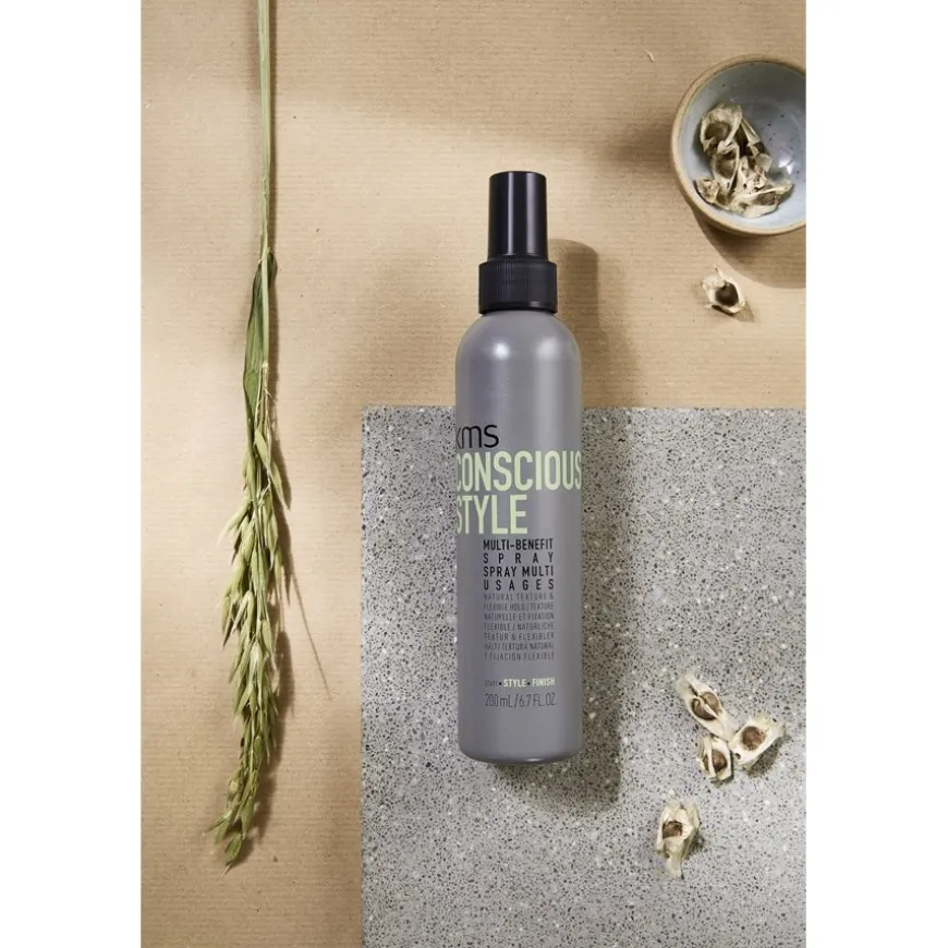 Ebenfalls zum Schutz der Umwelt und zur optimalen Pflege Ihrer Haare besteht das Conscious Style Multi-Benefit Spray von KMS aus einer minimalistischen, aber hochleistungsfähigen Wirkstoffformel, die alles enthält, was das Haar benötigt. Das I/E/H Copolymer, ein flexibles Styling-Polymer, verleiht elastischen Halt und schützt vor schädlichen Umwelteinflüssen, während das Feuchthaltemittel Octyldodecyl PCA nachhaltige Feuchtigkeit spendet. Außerdem enthält das Spray antioxidatives Moringasamenöl zum Schutz vor Umweltschadstoffen und beruhigendes Haferöl, das dazu beiträgt, das natürliche Gleichgewicht der Kopfhaut zu erhalten.AnwendungDas Conscious Style Multi-Benefit Spray von KMS ist für alle Haartypen gleichermaßen geeignet. Einfach auf das handtuchtrockene Haar sprühen und anschließend wie gewohnt föhnen. Bei der Verwendung eines Glätteisens auf das trockene Haar aufsprühen. Als Finish-Spray auf die fertige Frisur aufbringen.