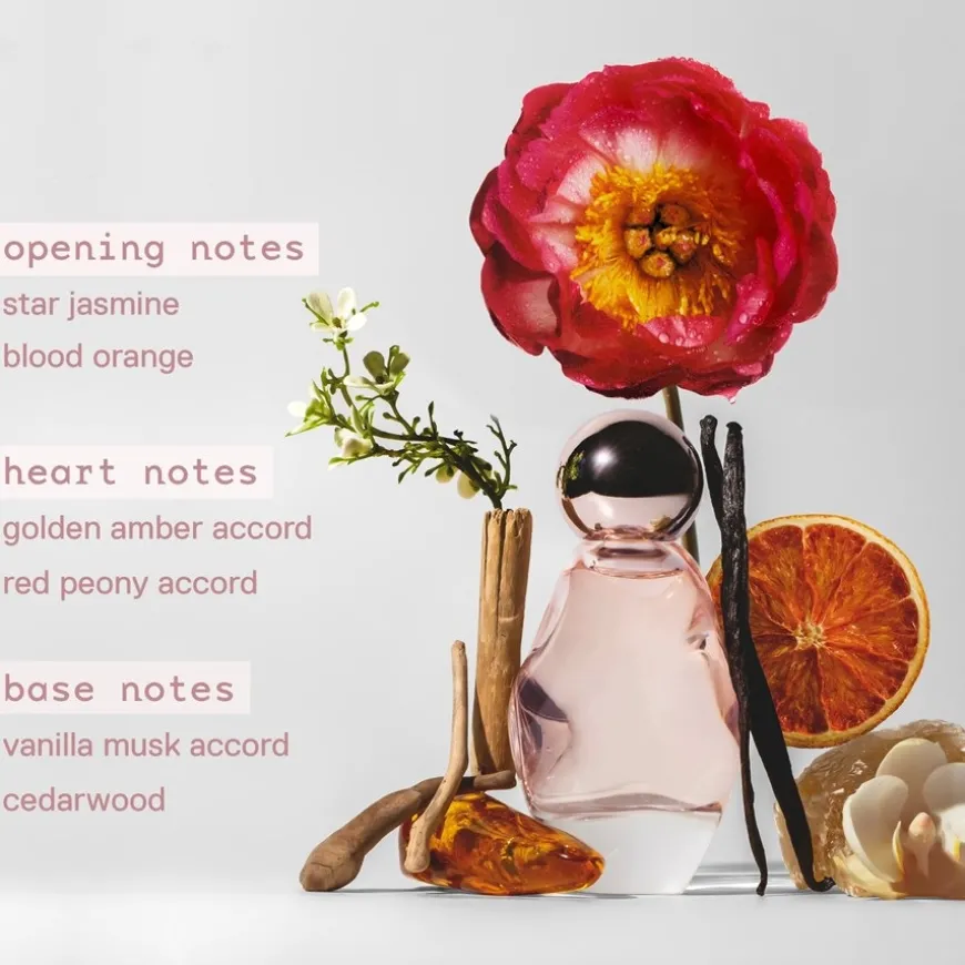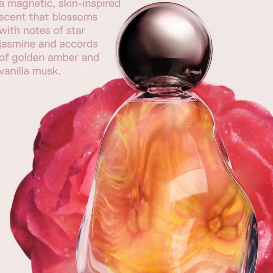 Im Herzen entfaltet sich ein üppiges Bouquet aus betörenden, luftig-süßen Blütennoten, das eine moderne, feminine Eleganz enthüllt und die Trägerin in eine Aura der Schwerelosigkeit hüllt. Die Basisnote bildet ein warmer, umhüllender Kokon aus sinnlichem goldenem Amber, cremigem Vanille-Moschus-Akkord und edlen Hölzern, der für eine lang anhaltende, hautnahe Wärme und eine unvergessliche, magnetische Signatur sorgt.