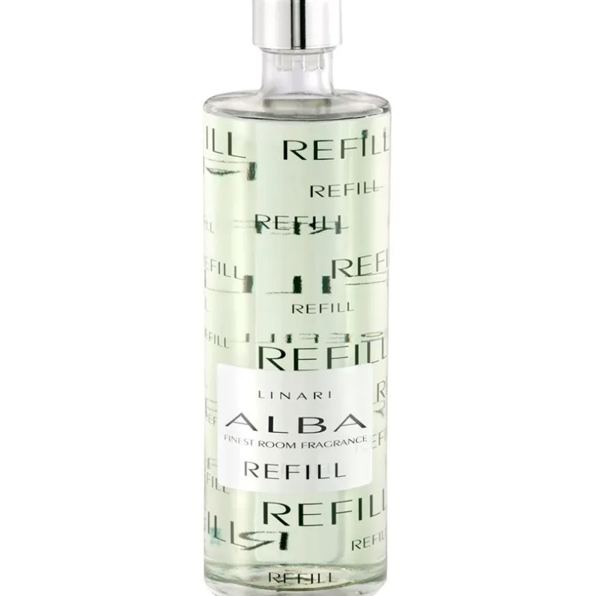 Die Linari Diffusoren sind kleine Kunstwerke, werden aus edlem italienischen Glas geformt, und sind mit Deckeln aus Edelhölzern versehen. Die gleiche Aufmerksamkeit zollt Linari auch den Nachfüllpackungen der Diffusoren. So ist die Alba Nachfüllung ebenso edel aus antikgrünem Glas gefertigt und mit silbernen Wellen verziert. Der Deckel ist mattweiß und die ebenfalls zu der Alba Nachfüllung gehörenden Kapillarstäbchen sind natürlich schwarz. In dieser Kombination fügt sich die Alba Nachfüllung genauso wie die Alba Diffusoren in jeder Umgebung harmonisch in das Ambiente ein.Wenn Sie die Alba Diffusoren von Linari noch nicht kennen, dann lassen Sie sich von dieser wundervollen Komposition aus den Händen von Mark Buxton begeistern. Mandarine, Mango und schwarze Johannisbeere geben den fruchtigen Auftakt, bevor es mit Alpenveilchen, Rosen, Iso E Super und Kaschmirholz opulent wird. Sanft und Seidig kommt der Abschluss des Raumdufts mit Zedernholz, Tonkabohnen, Vetiver und Moschus daher.