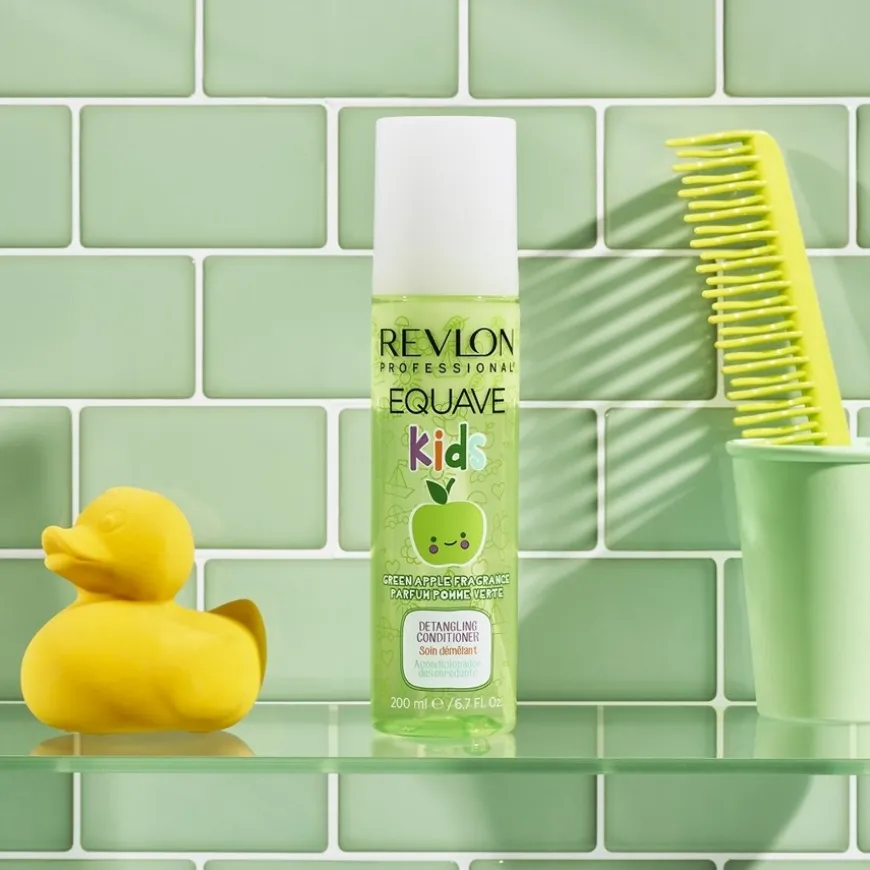 Sie wenden den Equave Kids Detangling Conditioner an, indem Sie ihn nach der Haarwäsche auf das handtuchtrockene Haar sprühen. Das Kosmetik-Produkt von Revlon Professional muss nicht ausgespült werden. Eine Anwendung im trockenen Haar ist ebenfalls möglich. Der Conditioner ist hypoallergen und enthält keine Parabene, Farbstoffe und Sulfate. Der enthaltene UVA-/UVB-Filter schützt das Haar schädigenden Sonnenstrahlen.