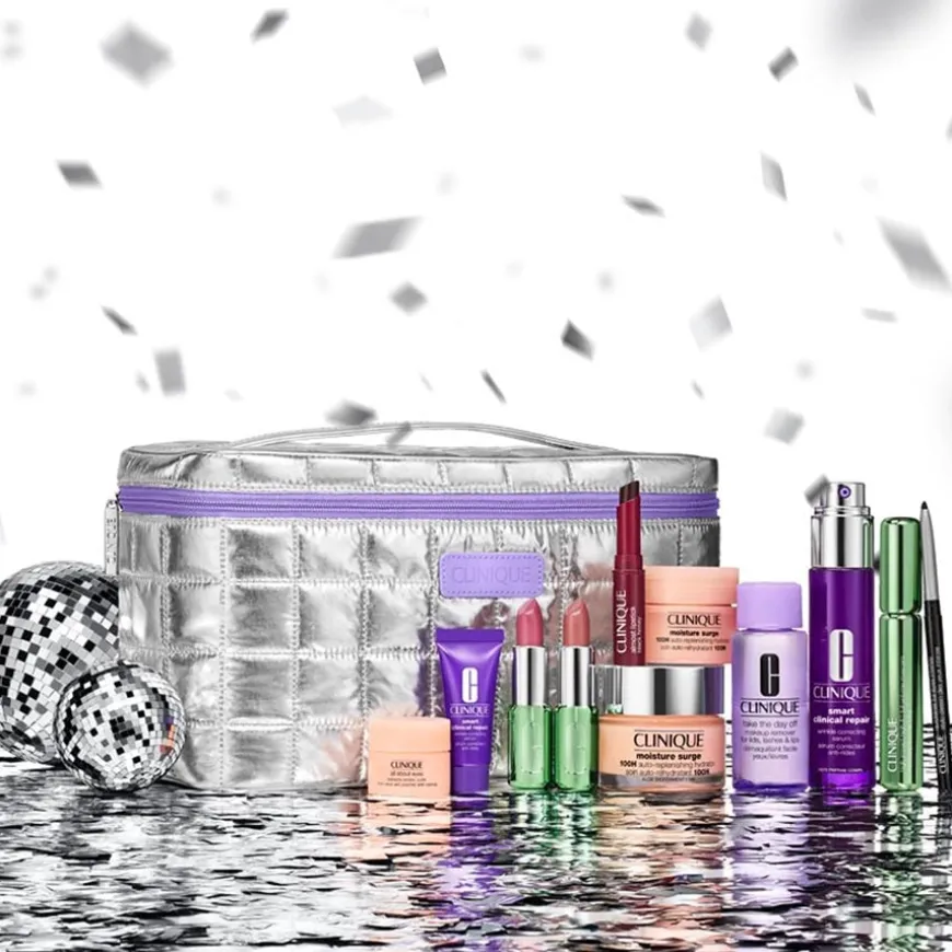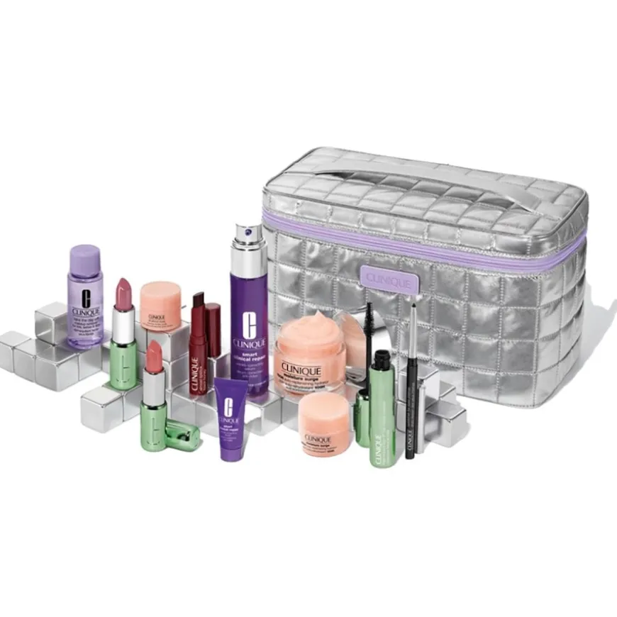 Full Size Moisture Surge™ 100H Auto-Replenishing Hydrator, 1.7oz/50mlMini Moisture Surge™ 100H Auto-Replenishing Hydrator, 0.5oz/15mlFull Size Clinique Smart Clinical Repair™ Wrinkle Correcting Serum, 1.0oz/30mlMini Clinique Smart Clinical Repair™ Wrinkle Correcting Serum, 0.34oz/10mlFull Size Quickliner™ for Eyes Intense in Intense Black, 0.01oz/0.25gMini All About Eyes™, 0.7oz/5mlFull Size Clinique Pop™ Longwear Lipstick in Plum Pop, 0.13oz/3.9gFull Size Clinique Pop™ Longwear Lipstick in Bare Pop, 0.13oz/3.9gMini Take The Day Off™ Makeup Remover For Lids, Lashes & Lips, 1.7oz/50ml Almost Lipstick in Black Honey, 0.04/1.2g