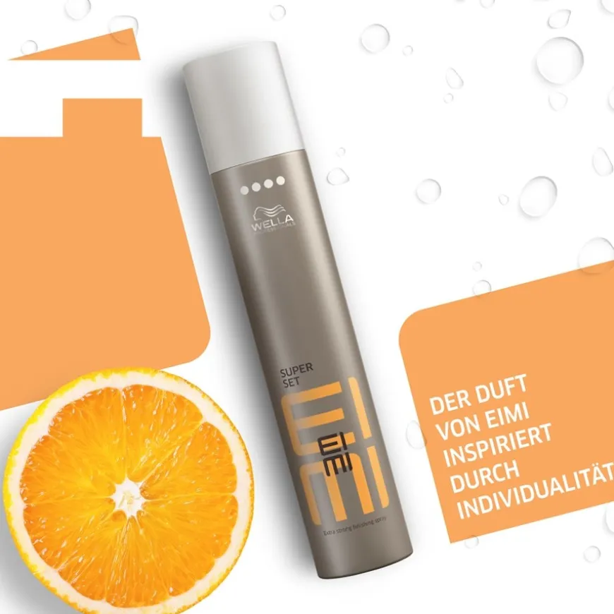 Dazu wird das Produkt nach dem Frisieren einfach auf das Haar gesprüht und schon verfügen Sie über eine zuverlässige Styling-Kontrolle. Die spezielle Formel des Finishing Spray von Wella schützt die Haare vor den Auswirkungen von Feuchtigkeit, Hitze und UV-Strahlen. Ein weiterer Pluspunkt stellt der angenehme Beauty-Duft dar, der das Styling belebt und für eine extra Portion Frische sorgt.Kraftvolle Fixierung für den fertigen Style verspricht der EIMI Super Set Finishing Spray ultra strong. Der Finishing Spray fixiert das Styling ohne zu beschweren und sichtbare Rückstände zu hinterlassen. So genießen Sie eine stylische Frisur mit perfektem Finish und hoher Haltbarkeit. Mit dieser starken Styling-Kreation lässt sich jeder angesagte Haartrend mühelos umsetzen und perfekt fixieren.