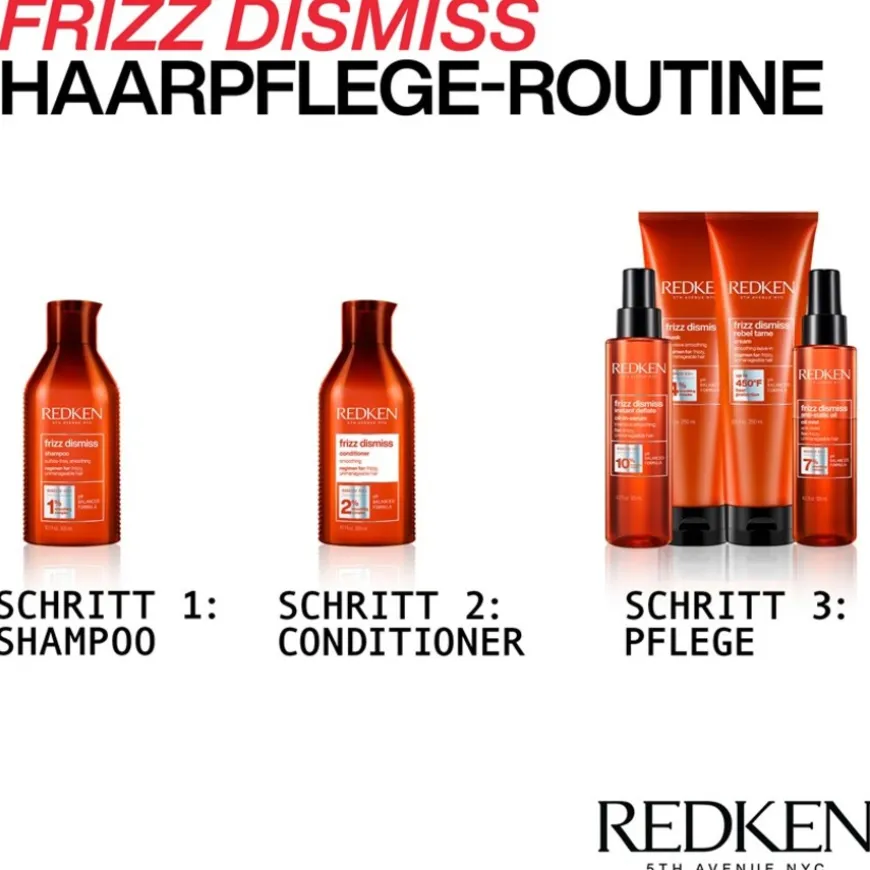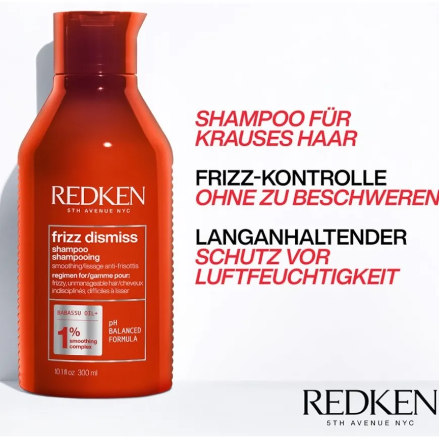 Die Produkte von Redken, etwa das Shampoo und andere Haarpflege-Produkte, werden nach ausgesuchten Kriterien hergestellt. So stehen bei Shampoo und Co. die beste Hautverträglichkeit und eine hervorragende Wirksamkeit stets an erster Stelle. Der hautfreundliche pH-Wert von 4,5 bis 5,5 ist Bestandteil eines jeden Haar-Pflegeproduktes dieses Kosmetikherstellers. Die Serie der „Frizz Dissmiss“Produkte schützt und glättet die Haarstruktur. Die Haare lassen sich leichter frisieren und die Frisur bekommt einen optimalen Halt. Die Pflegeserie „Frizz Dismiss“ ist speziell dafür konzipiert, die etwas kraus geratende Haarstruktur sanft und schonend zu glätten. „Frizz Dismiss“ verleiht dem Styling Ihrer Haare ein perfektes Finish. Die neuartige Technologie dieser Haarpflege sorgt mit wasserbindenden Wirkstoffen für die Elastizität Ihrer Haare. Sie schützt jedoch gleichzeitig vor zu viel witterungsbedingter Feuchtigkeit wie Regen, Nebel oder Schnee.