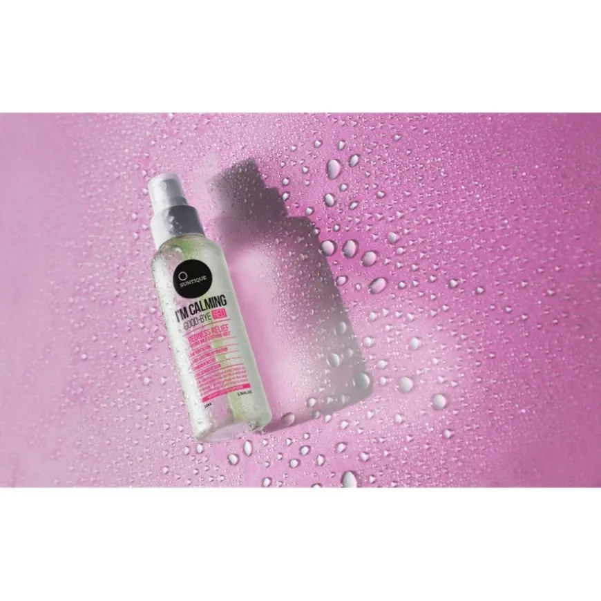Auch bei sorgfältigem Sonnenschutz kann die Haut nach einem Tag in der Sonne gereizt oder erhitzt sein. Genau hier kommt das I´m calming Good Bye Red Mist von Suntique für das Gesicht ins Spiel. Dieses erfrischende Spray spendet Feuchtigkeit, beruhigt empfindliche Haut und hinterlässt ein angenehm kühles Gefühl. Dank des praktischen Sprühformats lässt es sich jederzeit und überall anwenden – sogar über Make-up.