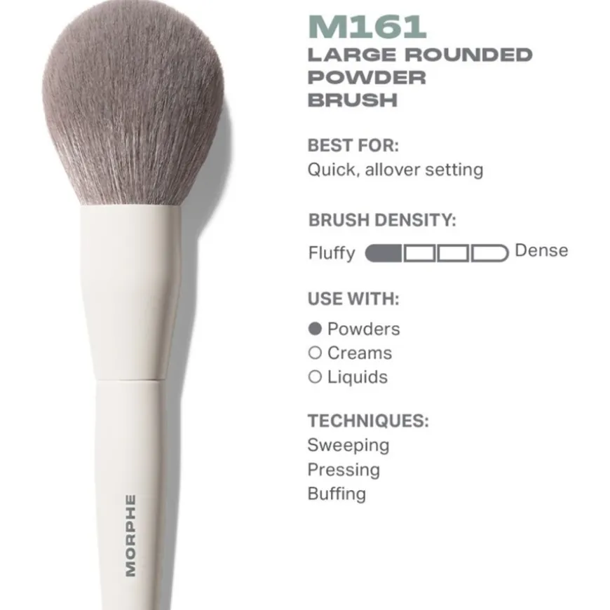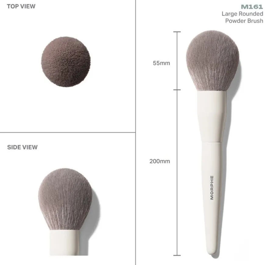 Der besonders fluffige und geschmeidige Morphe M161 Large Rounded Powder Brush Gesichtspinsel sorgt für eine Make-up-Applikation, so wie auch professionelle Stylisten sie machen würden. Der Pinsel sollte in Verbindung mit Puder genutzt werden, die exakte Struktur und Zusammensetzung des Puders ist indes unerheblich. Sie können den Morphe M161 Large Rounded Powder Brush Gesichtspinsel zudem wahlweise zur Applikation von Make-up im Gesicht oder beispielsweise am Dekolleté einsetzen. Praktisch ist dabei, dass der Pinsel selbst zu 100 % vegan ist, da er synthetische Borsten nutzt. Die gelten als besonders langlebig und zeigen eine hohe Widerstandskraft gegenüber Verformungen.