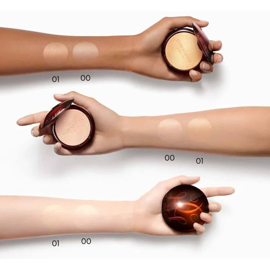 Passend zur neuen Frühjahresmode präsentiert der Hersteller seine neuen Terracotta Luminizer Highlighter. Der Terracotta Luminizer enthält zu 96 % Inhaltsstoffe aus natürlichem Ursprung. Mit seiner leichten Textur lässt sich das Puder angenehm auf den Teint auftragen und gut verblenden. Der Terracotta Luminizer Highlighter lässt die Augen leuchten und setzt attraktive Glanzpunkte im Teint. Dieses hochwertige Puder enthält das hautpflegende Arganöl und spendet der Haut lang anhaltende Feuchtigkeit. Das bewahrt sie vor dem Austrocknen. Tragen Sie zunächst das Augen-Make-up wie gewohnt auf. Anschließend schminken Sie den äußeren Rand oberhalb der Lidfalte. Wenn Sie eine kleine Menge Terracotta Luminizer auf die höchste Stelle der Wangenknochen platzieren, wird das Gesicht sanft modeliert. Der Teint bekommt eine frische Ausstrahlung und wirkt jung und vital.