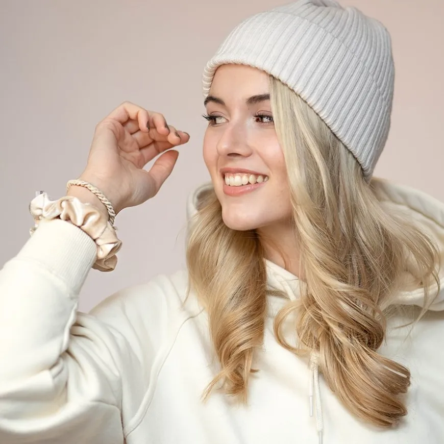 Der Original Scrunchie des deutschen Anbieters Bellody gehört zu den beliebtesten und vielseitigsten Haargummis & Scrunchies, die es aktuell auf dem Markt gibt. Im Inneren dieses erstaunlichen Hybrid-Produkts befindet sich ein klassisches Haargummi. Eine hochwertige, hervorragend verarbeitete Ummantelung aus Seide oder Velours-Samt sorgt für ein samtweiches Tragegefühl in jeder Situation. Ergebnis: Das Scrunchie von Bellody bändigt das Haar ohne störendes Druckgefühl.