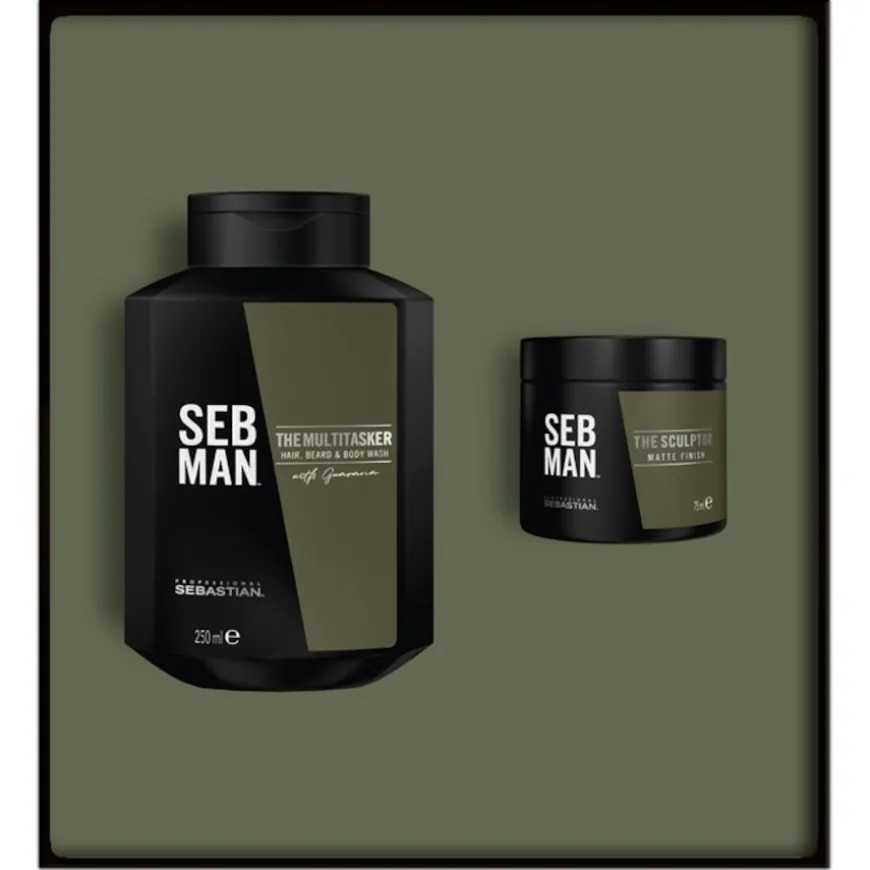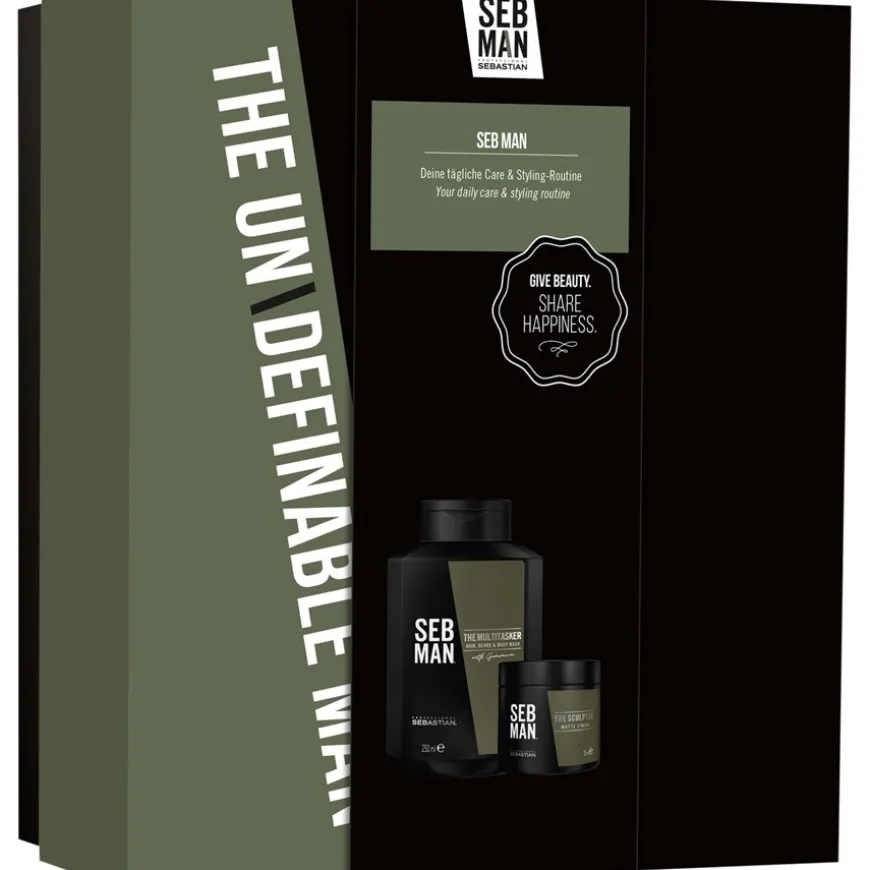 Einfach perfekt für coole Typen – natürlich auch für dich selbst! Die SEB MAN Geschenkbox enthält zwei praktische Männerprodukte, die zu jedem Haartyp passen. The Multi-Tasker 3-in-1 – Hair, Beard & Body Wash reinigt und erfrischt Haar, Bart und Körper – und The Sculptor – Matte Clay ist immer für jeden Style zu haben.