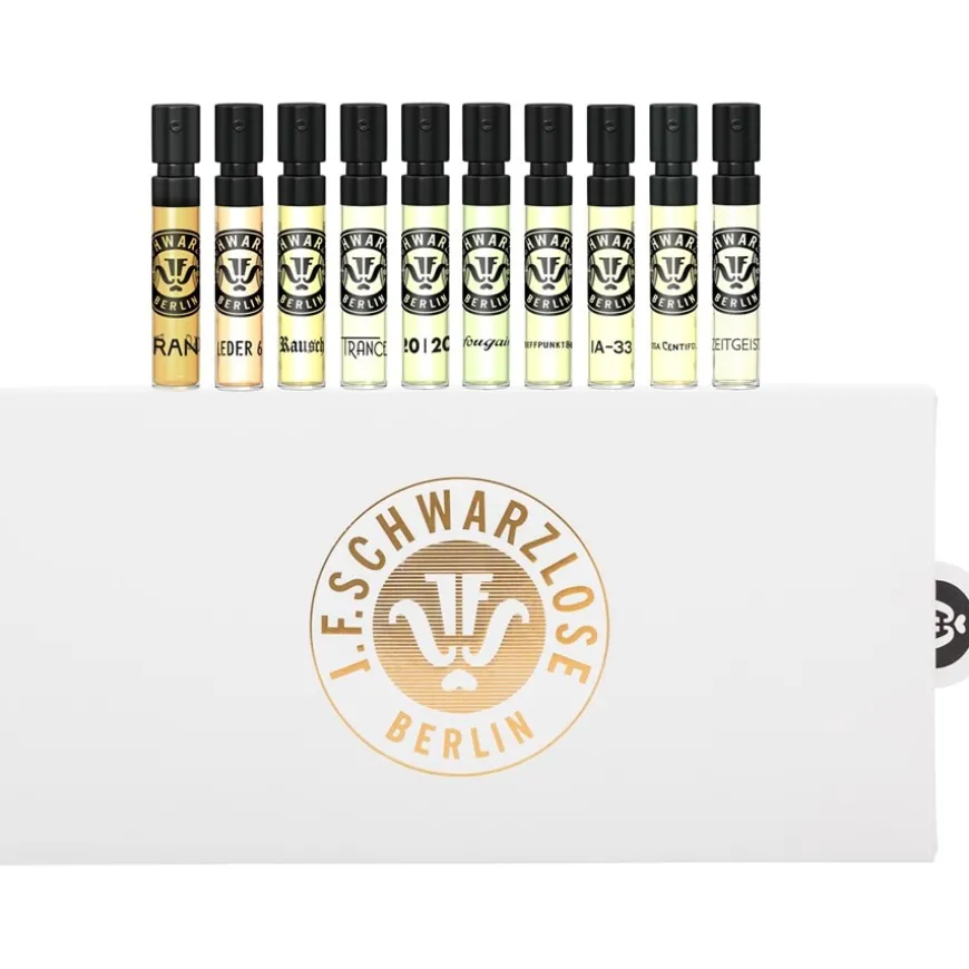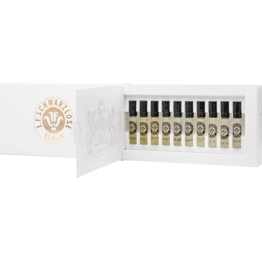 Gerettet wurden die Parfums durch Neugründung im Jahr 2012. Dabei knüpfte man bewusst an Traditionsrezepturen der 20er Jahre an. Das Ergebnis kam derart gut an, dass sich J.F. Schwarzlose Berlin zum angesagten Geheimtipp entwickelte und die Produktpalette ausbauen konnte. Die Geschenksets enthalten die Düfte Treffpunkt 8 Uhr, 1A-33, Zeitgeist, Leder, Rausch, 20/20, Trance, Rosa Centifolia, Fougair und Etrango. Das Discovery Set ist damit breit aufgestellt. Die Geschenksets stellen handliche Sprays mit 1,8 ml Inhalt bereit. Beim Parfum Leder beschränkt sich die Menge auf 1,6 ml. Insgesamt garantiert das Discovery Set einen vollständigen Überblick über das Duftangebot von J.F. Schwarzlose Berlin. Die Parfum-Sprays geben Gelegenheit zum Kennenlernen und eignen sich ideal zur Versorgung auf Reisen. Auch als Geschenk für Menschen mit einem feinen Näschen bietet sich ein Set wie dieses an.