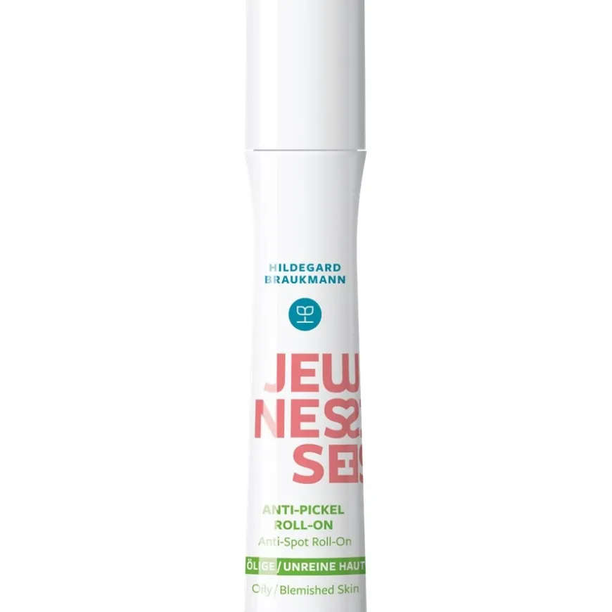 Der Jeunesse Anti-Pickel Roll-On von Hildegard Braukmann ist ein Wirkstoffkonzentrat, das aus einer Zusammensetzung einzelner Fruchtsäuren besteht. Die bakteriostatische Wirkformel befreit die Haut zuverlässig von Pickeln und Unreinheiten. Das enthaltene Panthenol lindert Hautreizungen und Rötungen und sorgt für einen frischen, natürlich schönen Teint. Der Edelstahl-Roll-On Applikator ist nicht nur besonders praktisch, mit ihm lässt sich das Gesichtspflege-Produkt auch sehr hygienisch auftragen. Diese Spezialpflege für unreine Haut ist auch super für die Anwendung unterwegs, denn der kleine Roll-On passt in jede Handtasche und in jede Beauty Bag.Aus der Jeunesse Pflege Serie von Hildegard Braukmann sind weitere Produkte erhältlich. Kombinieren Sie diese mit dem Anti-Pickel Roll-On, um eine perfekt aufeinander abgestimmte, ganzheitliche Gesichtspflege zu gewährleisten.