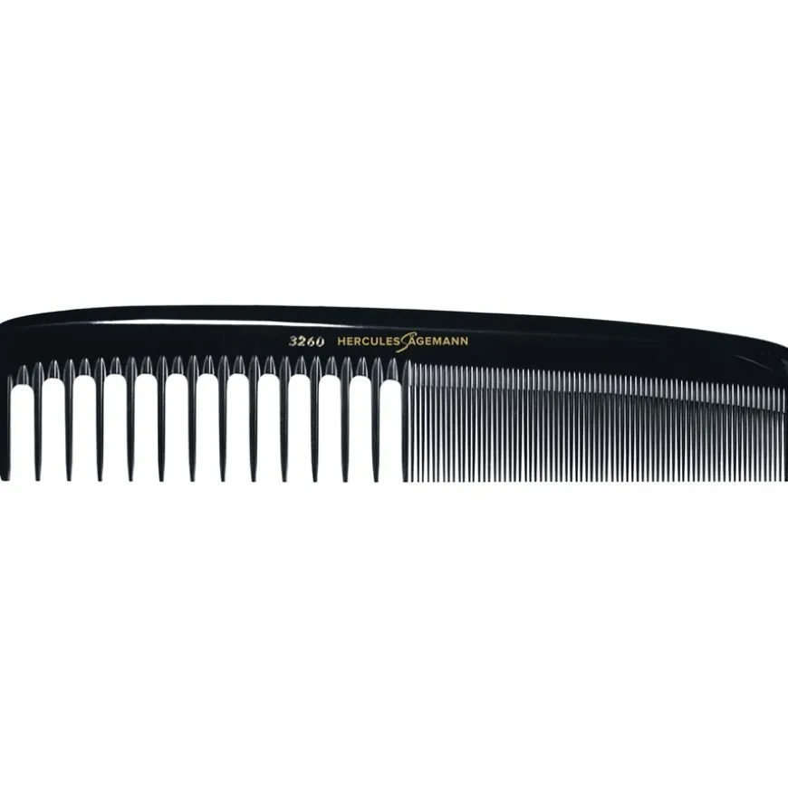 Lange oder kurze Haare, gelockte oder gefärbte Frisuren, sie alle kommen ohne professionelle Kämme nicht aus. Der Meisterstück Kamm Modell 3260 vom Label Hercules Sägemann pflegt die Haare bereits beim Kämmen und schenkt ihnen einen wundervollen Glanz. Dafür ist der Kamm aus bestem Ebonit hergestellt, einem aus natürlichem Kautschuk gewonnenen Material, das über wunderbare Eigenschaften verfügt. Der Werkstoff ist beispielsweise antistatisch und bewirkt, dass sich die Haare beim Kämmen mit dem Modell nicht aufladen können. Der Kamm ist in zwei verschiedene Bereiche aufgeteilt, die eine Pflege der individuellen Haarbereiche ermöglichen. Mit seinem edlen Glanz ist der Kamm ein echtes Meisterstück. Die Haare Bürsten & Kämme und weiteren Erzeugnisse des Labels Hercules Saegemann werden von der New-York Hamburger Gummi-Waaren Compagnie (NYH) in Hamburg angefertigt, einem Hersteller professioneller Ausstattungen für Friseurläden. Profis sind von den Produkten begeistert.