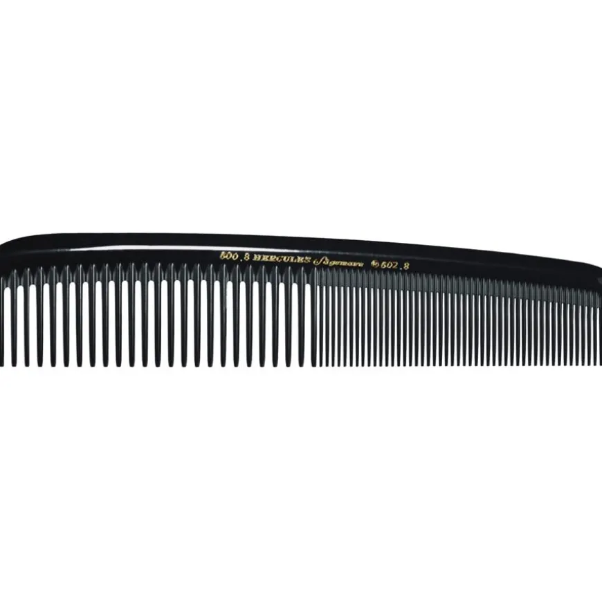 Der Meisterstück Kamm ist aus feinstem Ebonit hergestellt, einem Material, das über eine Vielfalt an positiven Eigenschaften verfügt. Ebonit ist robust und gleichzeitig sehr biegsam. Außerdem ist es antistatisch, dies verhindert, dass sich die Haare beim Kämmen aufladen können. Der Kamm ist mit einer perfekt angeordneten Reihe von Zinken ausgestattet, die an den Spitzen sanft abgerundet sind. Während des Kämmens und Stylens werden die Haare sanft massiert und stimuliert. Die Erzeugnisse des Labels Hercules Saegemann kommen von der New-York Hamburger Gummi-Waaren Compagnie (NYH) in Hamburg, einem Hersteller, der sich auf die Produktion von Waren für den professionellen Friseurbedarf spezialisiert hat. Profis auf der ganzen Welt sind von den Kämmen und Bürsten des Labels begeistert und bestellen diese immer wieder nach.Sie können die Haare Bürsten & Kämme des Labels Hercules Sägemann hier im Shop Parfumdreams erwerben. Überzeugen Sie sich von der ausgezeichneten Qualität und Güte der Kämme.
