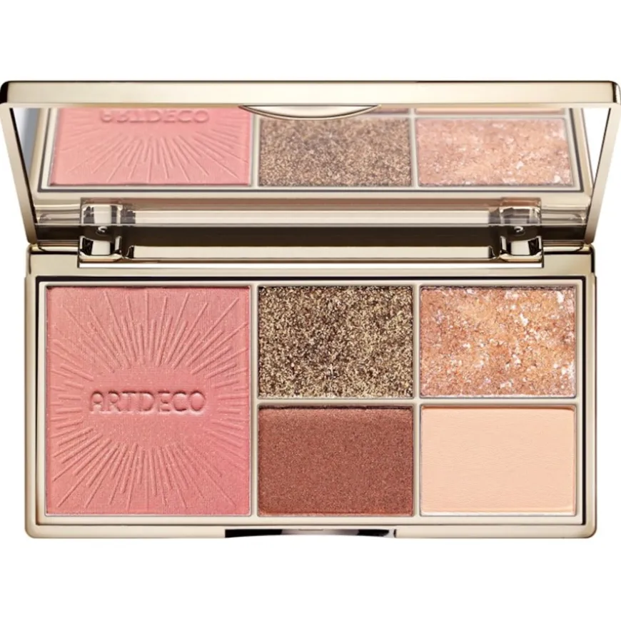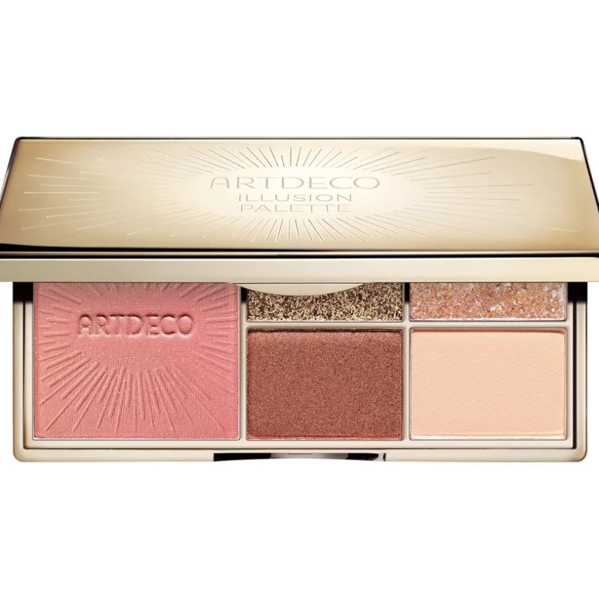 Die Illusion Palette for cheeks & eyes von ARTDECO vereint vier harmonische Lidschattenfarben und einen sanft verblendbaren Blusher. Die hochpigmentierten Lidschatten haben eine intensive Leuchtkraft und endlose Styling-Möglichkeiten. Vom dezenten Alltags-Look bis zum glamourösen Party-Make-up ist alles möglich. Durch die vielfältigen Farbvariationen lassen sich unzählige Looks kreieren. Ob einzelne Farbe oder mehrere kombiniert, die perfekt aufeinander abgestimmten Töne liefern ein ideales Ergebnis. Die Lidschatten zeichnen sich durch eine gute Farbabgabe, hohe Deckkraft und intensive Leuchtkraft aus. Mit einem Mix aus Glanz und Glitzer bringen sie die Augen perfekt zur Geltung. Dank ihrer cremig-seidigen Textur lassen sich die Farben mühelos auftragen, nahtlos verblenden und bleiben lang anhaltend intensiv.