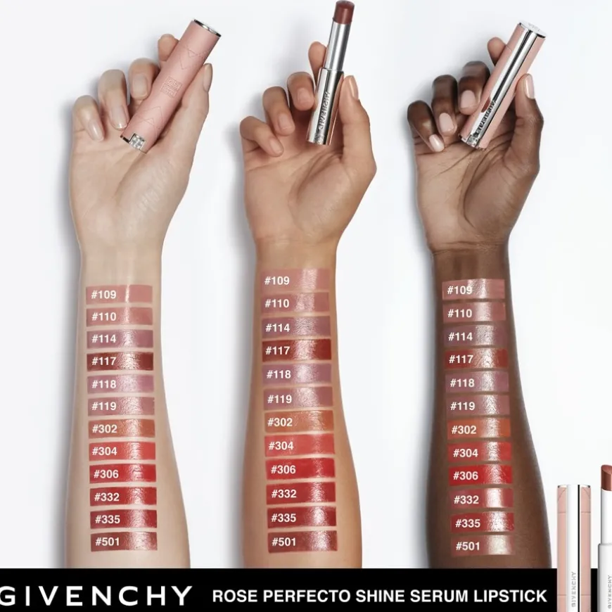 Der Rose Perfecto Shine Serum Lipstick kommt in einem eleganten Etui, das die Handschrift von Givenchy trägt: feinstes Leder, raffinierte Details und das ikonische 4G-Monogramm machen ihn zu einem echten Mode-Statement.