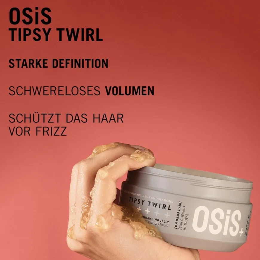 Verwenden Sie das Tipsy Twirl Wave & Curl Enhancing Jelly OSIS+ Locken & Wellen direkt nach dem Haarewaschen. Geben Sie eine kleine Menge auf die Fingerspitzen und arbeiten Sie das Gel in die Haare ein. Definieren Sie Wellen und Locken genau nach Ihren Wünschen. Verwenden Sie danach einen Föhn oder lassen Sie Ihre Haare einfach an der Luft trocknen. Das Jelly aus der Pflegeserie OSIS+ Locken & Wellen ist auch für das trockene Haar geeignet. Schwarzkopf Professional hat das Jelly vegan formuliert.