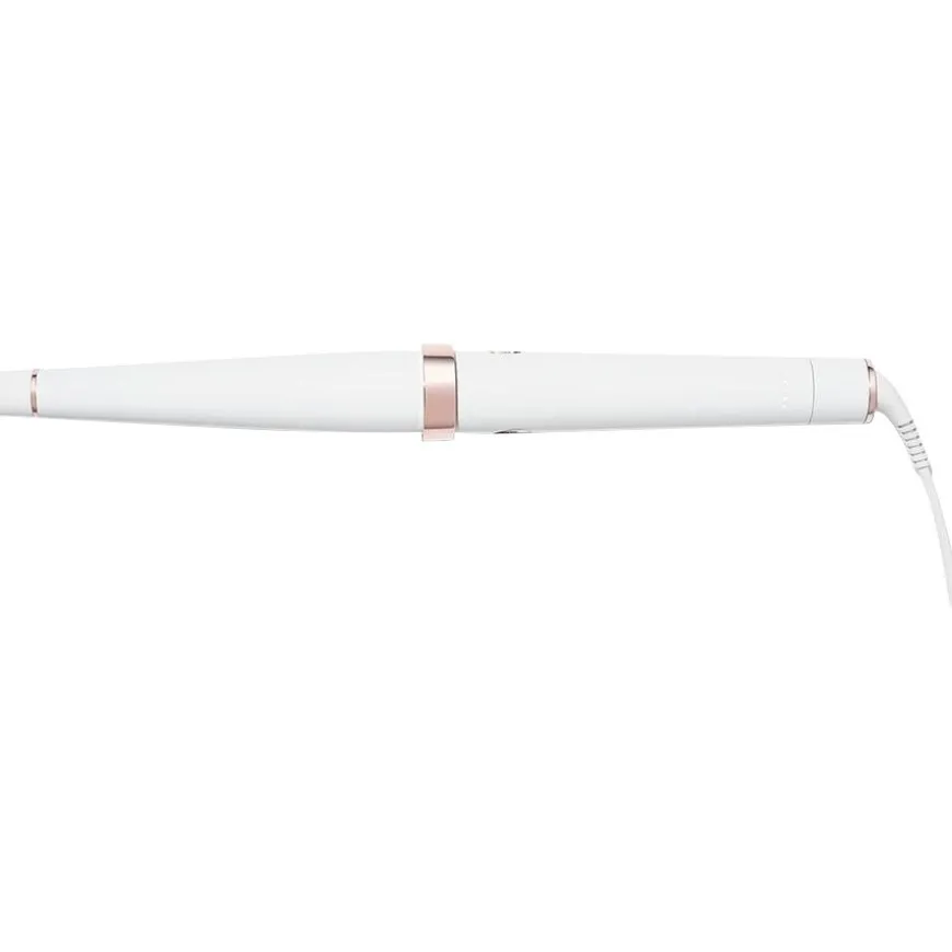 Wie die meisten Lockenstäbe von T3 nutzt auch der Singlepass Wave Professioneller 32-19 mm fünf einstellbaren Wärmestufen. Diese arbeiten in einem Temperaturfenster von 125 bis 210 °C. Die Temperatur wird gleichmäßig verteilt. Daraus resultiert ein schonendes Styling bei einer relativ geringen Hitzeeinwirkung. Glänzende Wellen, die lange halten, sind das Ergebnis. Die Cool-Tip-Spitze und ein integrierter Ständer vereinfachen das Styling und machen es komfortabler für den Anwender. Dieser Lockenstab arbeitet mit einer effizienten Keramikheizung. Nach 60 Minuten schaltet sich diese automatisch ab. Das erhöht die Sicherheit und spart Energie, sollten Sie das Gerät im eingeschalteten Zustand vergessen. Praktisch sind die weltweite Spannungsanpassung (100 bis 240 V) und natürlich das 360°-Drehkabel. Es lässt sich kaum verwickeln oder verbiegen. Es ist mit 2,7 Meter lang genug. Ein hitzebeständiger Handschuh wird mitgeliefert.