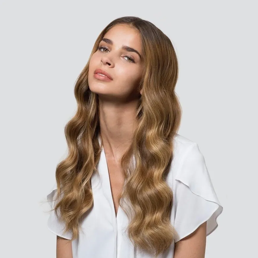Die Locke lässt du in der Hand auskühlen. Für einen lässigeren Look kannst du das Haar zuletzt einfach durchschütteln oder durchkämmen.