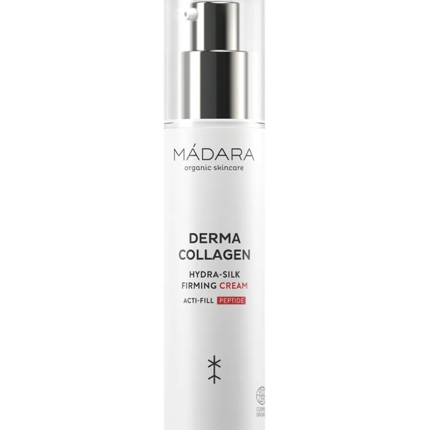 Als Hautpflege für den Tag legt sich die Creme von MÁDARA spürbar leicht wie ein feiner Schutz auf die Haut. Von der Pflegeformel mit Mikroalgen, natürlichen Peptiden und Hyaluronsäure werden Umwelteinflüsse zuverlässig abgewehrt. In den Hautschichten stehen den Hautzellen für die optimale Pflege gut einziehende Öle, Pflanzen- und Algenextrakte für viele Stunden zur Verfügung.Wird die Pflege als Nachtcreme verwendet, unterstützen die Wirkstoffe in der Hydra-Silk Firming Cream die hauteigene Zellregeneration mit verjüngenden Bausteinen. Bei regelmäßiger Anwendung als ergänzende oder einzige Hautpflege werden feine Linien komplett ausgeblendet und Fältchen deutlich reduziert. Für einen Extrakick Pflege beispielsweise für gestresste Haut empfiehlt sich zusätzlich die mehrmals wöchentliche Anwendung geeigneter Collagen Seren, am besten von der gleichen Marke.