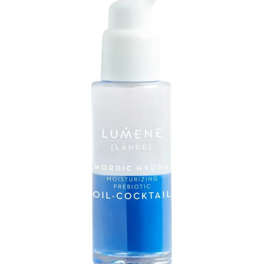 Der Lumene Nordic Hydra Moisturizing Prebiotic Oil-Cocktail ist eine nährende Zweiphasen-Hautpflege, um die Schutzbarriere und das natürliche Mikrobiom der Haut zu ergänzen. Hierzu wurde die Hautpflege mit innovativem präbiotischem Hafer-Xylitol angereichert. Die Mischung aus Bio-Birkensaft, reinem arktischen Quellwasser sowie pflegendem Heidelbeeröl versorgt die Haut 24 Stunden lang mit wichtiger Feuchtigkeit. Jojobaöl pflegt die Haut zusätzlich.Diese vegane Hautpflege wurde speziell für trockene und feuchtigkeitsarme Haut entwickelt. Verbrauchertests haben bestätigt, dass der Nordic Hydra Oil-Cocktail die Haut anhaltend und intensiv mit Feuchtigkeit versorgt und sie schützt und belebt.Vor Gebrauch schütteln. Jeden Abend und bei Bedarf morgens vor der Feuchtigkeitscreme auf die gereinigte Haut von Gesicht und Hals auftragen.