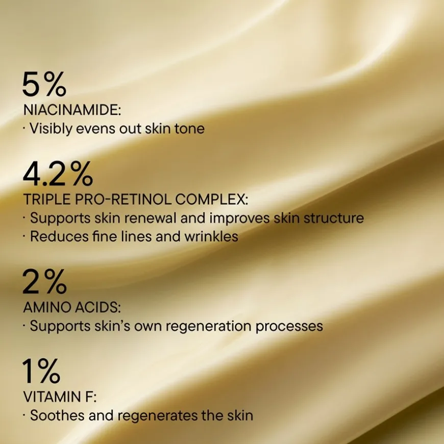 Während der Anwendungsdauer direkte Sonne vermeiden und zusätzlich tagsüber eine Pflege mit SPF 30+ verwenden.