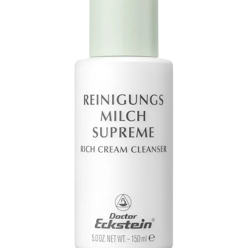 Die Doctor Eckstein Hautpflege enthält Vitamin E, Seidenproteinhydrolysat und hochwertige Feuchthaltefaktoren. Diese Kombination hat einen intensiv hydratisierenden Effekt und trägt zugleich dazu bei, dass Wasser längerfristig in der Haut bewahrt werden kann. Nutzen Sie die Reinigungsmilch Supreme, um Ihre Haut täglich intensiv zu reinigen und mit wertvollen Pflegestoffen zu versorgen. Tragen Sie die Milch dazu mit den Fingerspitzen auf die trockene Gesichtshaut auf und massieren Sie sie sanft ein. Danach mit lauwarmem Wasser abnehmen und die Haut trocken tupfen. Im Anschluss empfiehlt sich die Anwendung einer Lotion passend zu Ihrem individuellen Hauttyp.