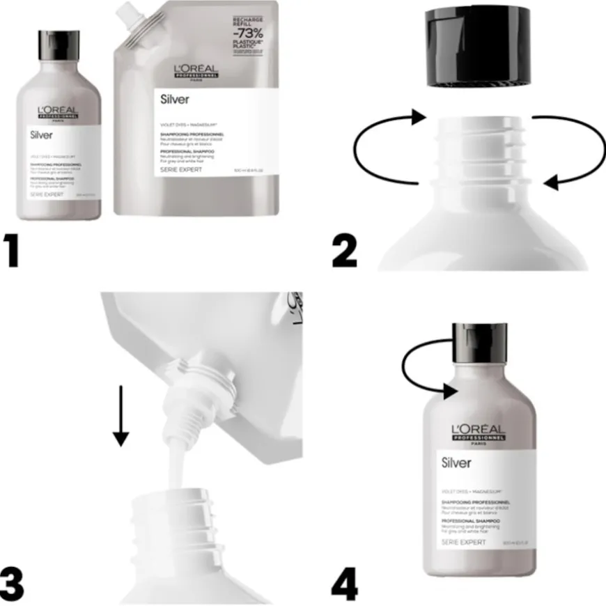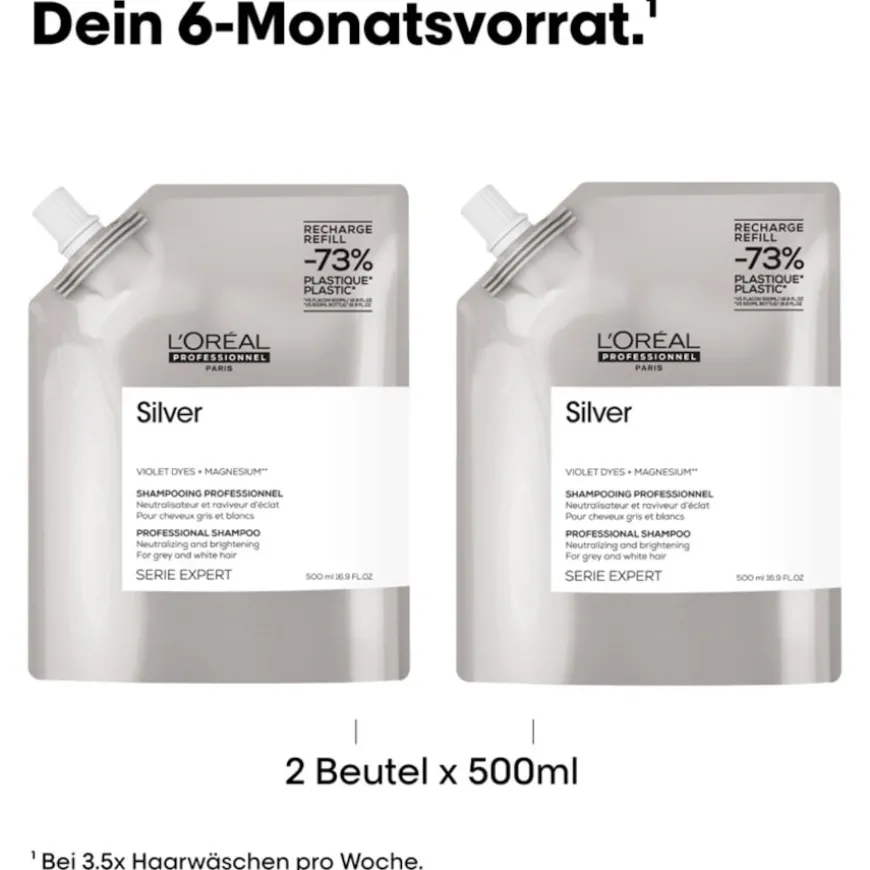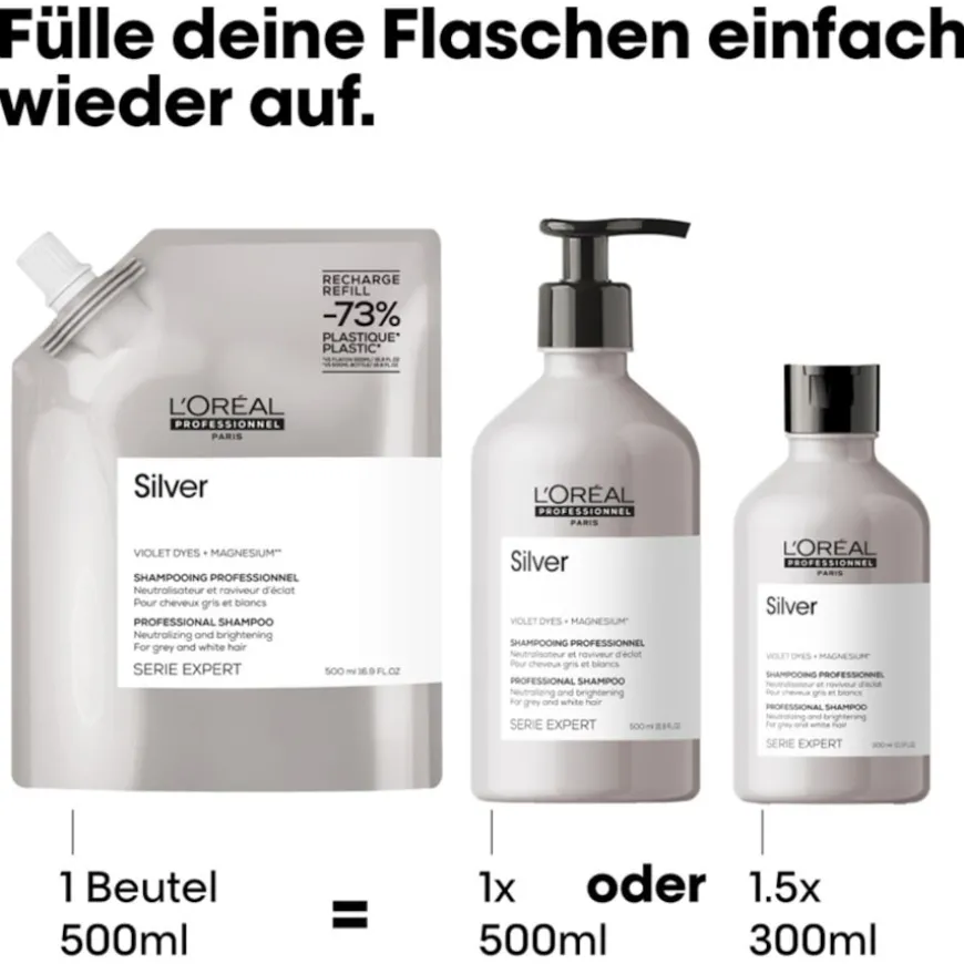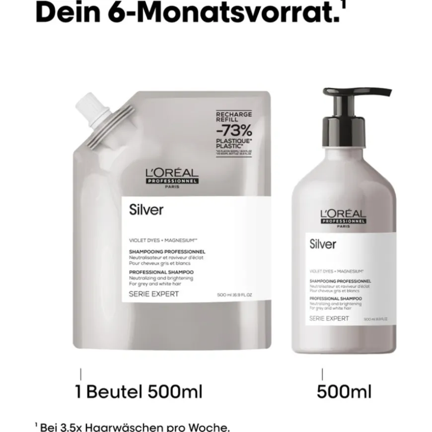 Durch die regelmäßige Verwendung des Silver Shampoos von L’Oréal Professionnel wird ein bereits vorhandener Gelbstich zuverlässig neutralisiert. Graue und weiße Naturhaare erhalten eine natürliche Farbe sowie einen gesunden und vitalen Glanz. Doch nicht nur ein purer und glänzender Farbton wird durch das Shampoo hervorgerufen – graue und weiße Haare werden zudem besonders glatt. Sie lassen sich deutlich einfacher frisieren und stylen. Sollte nach einer Anwendung das gewünschte Resultat noch nicht erzielt sein, können mehrere Waschgänge direkt nacheinander erfolgen.