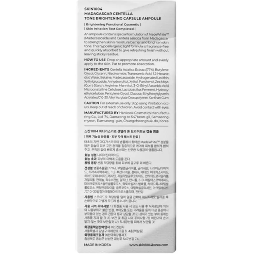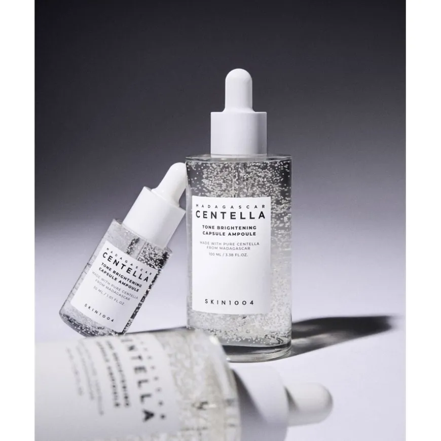 Die Madagascar Centella Tone Brightening Capsule Ampoule von Skin 1004 spendet der Haut reichlich Feuchtigkeit, hellt den Hautton auf und bringt den Teint zum Strahlen. Das Produkt beruhigt die Haut und mildert das Erscheinungsbild von Pigmentflecken und Aknenarben. Zudem lindert die Hautpflege Rötungen und Reizungen. Sie kann von allen Hauttypen verwendet werden. Ihre Formel ist frei von künstlichen Duftstoffen. Geben Sie 2 bis 3 Tropfen der zarten Textur auf die Fingerspitzen. Massieren Sie das Serum sorgfältig in die Haut ein, bis es komplett eingezogen ist. Freuen Sie sich über glatte, geschmeidig weiche Haut und einen strahlenden, makellosen Teint!