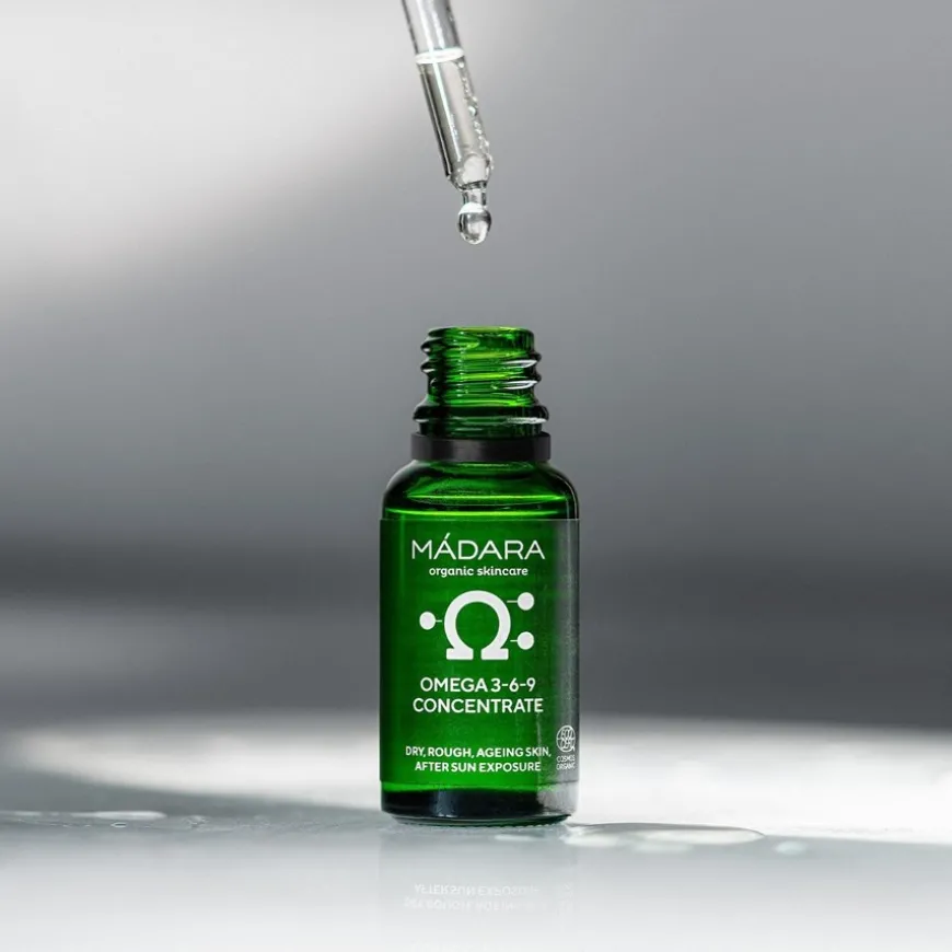 Das Omega 3-6-9 Concentrate von MÁDARA führt der Haut reichlich Feuchtigkeit zu, um sie vor Trockenheit zu bewahren. Es stärkt die Hautbarriere und schützt vor Umweltbelastungen und Schäden durch Sonneneinstrahlung. Vor allem nach dem Sonnenbaden pflegt es die Haut samtig weich und beugt der Entstehung von feinen Linien und Fältchen vor. Seine Formel eignet sich für trockene, raue und reife Haut. Das Serum kann auf dem Gesicht und auf dem gesamten Körper angewendet werden. Vermischen Sie 1 bis 3 Tropfen morgens und abends mit Ihrer Gesichts- oder Körperpflege. Freuen Sie sich über seidig weiche, glatte und rundum versorgte Haut!
