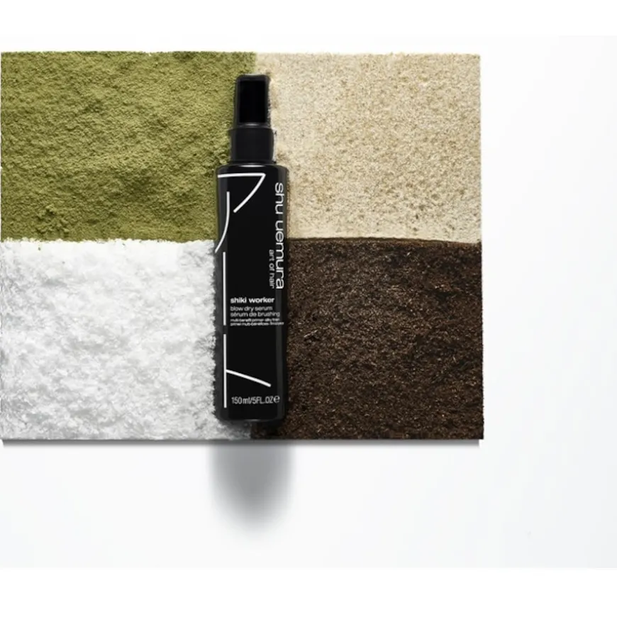 Das Shiki Worker Blow Dry Serum schützt und pflegt Ihre Haare mittels zahlreicher hochwertiger Inhaltsstoffe und schützt sie vor Schäden durch Stylinghitze sowie äußere Umwelteinflüsse. Tragen Sie das Serum zunächst auf das handtuchtrockene Haar auf und verteilen Sie es gleichmäßig in die Längen und Spitzen. Anschließend stylen Sie Ihre Haare mithilfe von Shu Style wie gewohnt. Weitere Shu-Uemura-Produkte sind im Shop erhältlich.