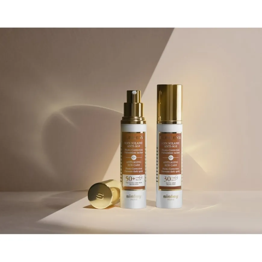 Die Sisley Sunleÿa Soin Solaire Anti-Âge SPF30 ist eine hochwirksame Sonnenpflege für alle Hauttypen. Sie bietet einen besonders hohen Schutz und ist die ideale Wahl für sehr helle oder sonnenempfindliche Hauttypen. Zu verdanken ist die intensive Schutzwirkung einer Kombination aus Hightech-Sonnenfiltern der neuesten Generation mit pflanzlichen Aktivstoffen. Die innovativen Anti-Aging-Stoffe wie Extrakte aus den Blättern der Silberweide, Soja-Peptid-Extrakt, Vitamin-E-Acetat, ätherische Öle von Majoran und Salbei, Karité-Butter und pflanzliches Glyzerin bekämpfen Falten und Pigmentflecken. Darüber hinaus beugen Sie einem Festigkeits- und Feuchtigkeitsverlust der Haut vor. Dank hohem Schutzfaktor wirkt die Sonnenpflege zudem Schäden durch Sonneneinstrahlung sowie lichtbedingter Hautalterung entgegen. Das Ergebnis ist ein frischeres, gleichmäßigeres Hautbild mit optimalem UV-Schutz. Punkten kann die wasserfeste Hautpflege obendrein mit einer frischen, seidigen Textur, die rasch in die Haut einzieht und keinen weißen Film hinterlässt. Einer gleichmäßigen, strahlenden und dauerhaften Bräune steht somit auch bei heller und empfindlicher Haut nichts mehr im Weg.