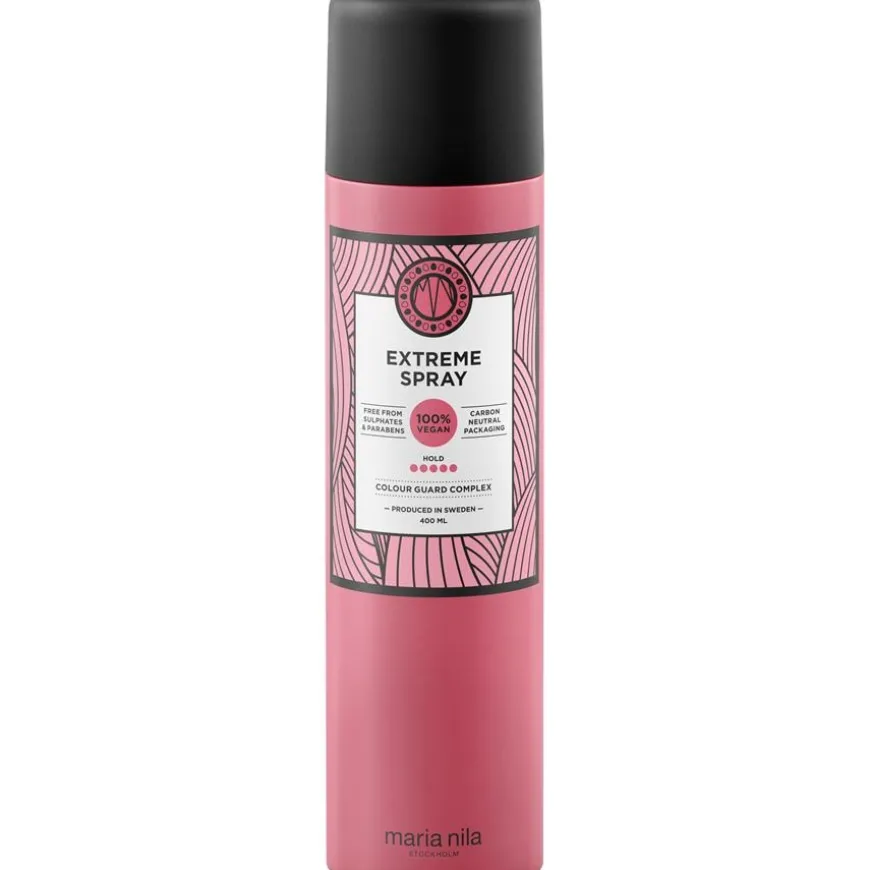 Style & Finish Extreme Spray von Maria Nila vereint zuverlässigen, extra starken Halt und Pflege für Ihr Haar: Ihre Haare erhalten lang anhaltenden Stand, ohne Ihr Haar auszutrocknen oder starr aussehen zu lassen. Es wirkt natürlich, bleibt weich bei gleichzeitiger Griffigkeit. Es glänzt seidig, wirkt gepflegt und gestärkt.Das sanfte Spray bietet durch den angenehm ultrafeinen Sprühnebel eine besonders gleichmäßige Verteilung auf dem Haar und hinterlässt keinen klebrigen, beschwerenden Film. Ihr Haar wirkt leicht und locker und wird leicht frisierbar für Stylings, die besonders starken Halt benötigen.Föhnen Sie nach der Haarwäsche Ihr Haar trocken und stylen Sie es nach Belieben. Der innovative „Color Guard Complex“ schützt vor haarschädigenden UV-Strahlen und freien Radikalen. Extreme Spray Style & Finish von Maria Nila ist sulfat- und parabenfrei und enthält 100 % vegane Inhaltsstoffe. Die Verpackung ist zu 100 % CO2-kompensiert.