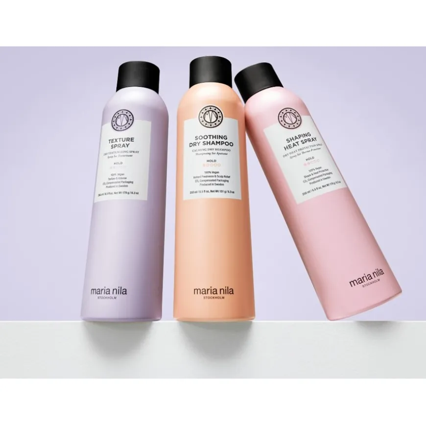 Das Style & Finish Soothing Dry Shampoo von Maria Nila ist ein wohltuendes Puderspray, das ein müheloses Haarstyling mit wertvoller Pflege kombiniert. Es beruhigt die gestresste Kopfhaut sanft und kühlt sie. Seine Formel ist reich an kraftvollen Wirkstoffen wie Aloe vera, Niacinamid und Reisstärke. Es lindert im Handumdrehen den Juckreiz auf der Kopfhaut. Gleichzeitig verwöhnt es die Haare zwischen den Haarwäschen und verleiht ihnen ein frisches, sauberes Gefühl. Aloe vera wirkt besänftigend und beugt Haarverlust vor. Reisstärke befreit die Kopfhaut von überschüssigem Talg.