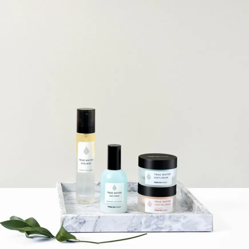 können Sie Ihr Wohlbefinden stärken. Wenn die Gesichtshaut ausreichend Feuchtigkeit bekommt, sieht sie rosig und gesund aus. Sie wird optimal durchblutet, wirkt glatt und gesund. In der kalten Jahreszeit ist die Feuchtigkeitspflege perfekt, um trockenen oder rissigen Stellen vorzubeugen. Sie können die Hautpflege Toner True Water Deep Toner von Thank You Farmer auf jedem Hauttyp anwenden. Trockene Haut ist oftmals sehr empfindlich: Die hochwertige Hautpflege reizt nicht, sondern wirkt pflegend und gibt Ihnen ein gutes Gefühl. Nutzen Sie das Extrakt für sich selbst oder verschenken Sie es zu einem besonderen Anlass.