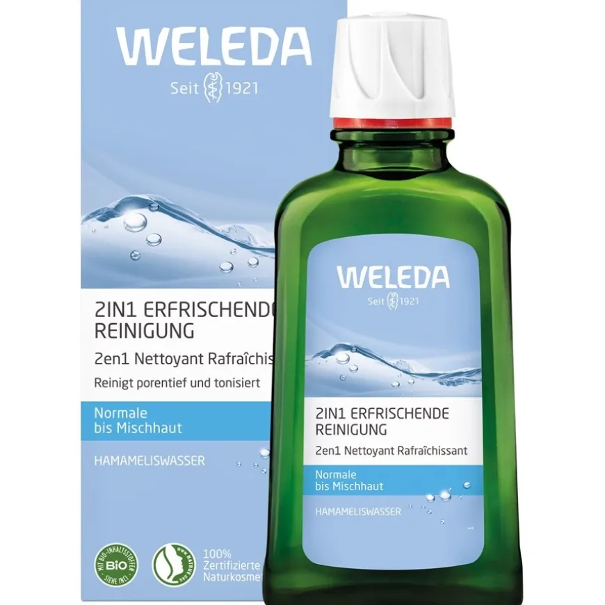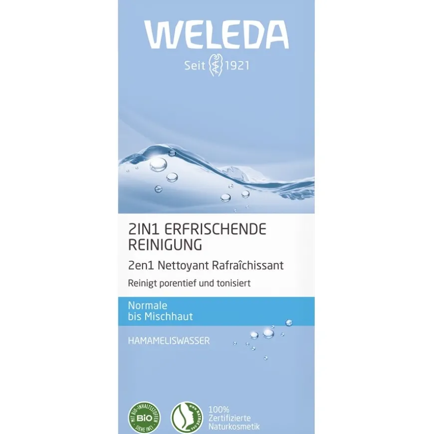 Die Erfrischende 2 in 1 Reinigung von Weleda reinigt mit natürlichem Hamamelisextrakt und Olivenölseife. Bis tief in die Poren säubern die wirksamen Inhaltsstoffe und entfernen Verschmutzungen aller Art. Die erfrischende Formulierung tonisiert die Haut und verfeinert das Hautbild. Ihre Haut ist wunderbar belebt und sieht jugendlich frisch aus. Der feine zitronige Duft aus wertvollen ätherischen Ölen tut nicht nur der Haut gut, er wirkt sich auch positiv auf Ihre Seele aus. Natürlich ist die Hautverträglichkeit der Erfrischenden 2 in 1 Reinigung dermatologisch bestätigt. Passende Produkte von Weleda für die ergänzende Gesichtspflege sind in unserem Onlineshop ebenfalls erhältlich.