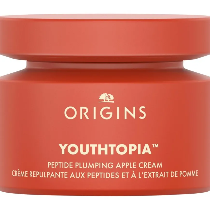 Für die wirksame Hautpflege hat Origins eine beliebte Frucht entdeckt: Äpfel. Sie enthalten Inhaltsstoffe, die sich ideal für die Youthtopia-Pflegeprodukte eignen. Fermentierte Apfelschalen enthalten eine Fülle von Antioxidanzien. Sie schützen Zellen vor schädigenden Einflüssen und helfen ihnen, sich gesund zu regenerieren. Das Apfelschalen-Ferment stammt ausschließlich aus recycelten Schalen. Ein weiteres Schönheitselixier, das aus Äpfeln gewonnen werden kann, ist Apfel-Stammzellen-Extrakt. Für die Youthtopia-Serie verwendet Origins Extrakte einer Apfelsorte, die sich von Natur aus besonders lange frisch hält.Die Peptide Plumping Apple Cream ist nicht nur reich an pflegenden Inhaltsstoffen, sie erfrischt während der Hautpflege auch mit einem angenehmen Duft. Neben einer Mischung aus zitrischen Noten duftet die leichte Peptidcreme angenehm nach Geranie und Galbanum.