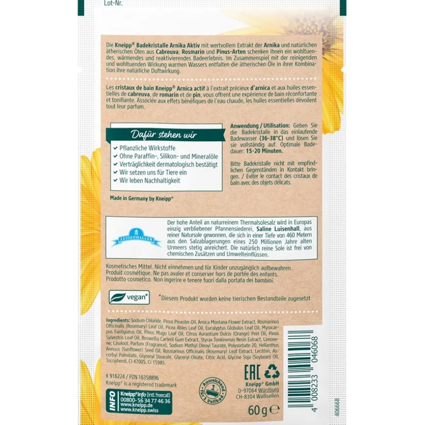 Kneipp Badekristalle enthalten einen hohen Anteil von naturreinem Thermalsolesalz. Dieses wird in der Saline Luisenhall aus reiner Natursole gewonnen. Die natürlich, reine Sole ist frei von chemischen Zusätzen und Umwelteinflüssen. Durch die besondere Kristallstruktur löst es sich sehr leicht im Wasser auf.