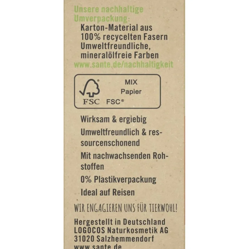 Die Hautpflege von Sante Naturkosmetik macht Sommerlaune in Dusche und Wanne. Die Duftforschung hat gezeigt, dass Orangenduft die Stimmung heben und ausgleichend wirken kann. Das sommerliche, natürliche Aroma der Mango vermittelt Wärme und Wohlgefühl. Feste HAPPINESS Duschpflege reinigt sanft mit milden Tensiden. Ein Austrocknen der Haut wird verhindert. Sie können die Körperpflege einfach auf der feuchten Haut aufschäumen. Genießen Sie den anregenden Orangenduft und den sanften, pflegenden Schaum. Anschließend gut abspülen. Die Duschpflege Bio-Orange & Mango ist in Deutschland aus nachwachsenden Rohstoffen hergestellt und nachhaltig verpackt.