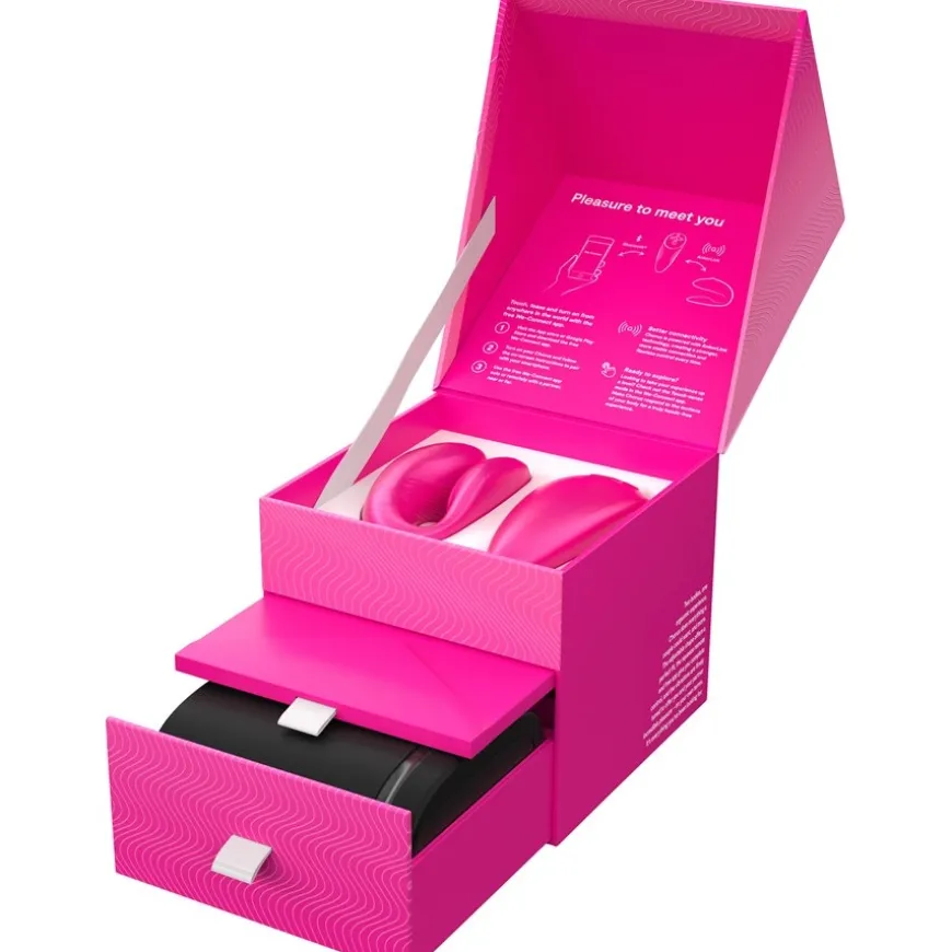 Damit Sie genau dann, wenn Sie am meisten Lust verspüren, auch die intensivsten Vibrationen genießen können, kommt der We-Vibe Couple Vibrator Chorus Cosmic Pink mit einer Squeeze Fernbedienung. Je fester Sie diese drücken, desto stärker wird die Vibration. Der Vibrator kann per USB aufgeladen werden und bietet bis zu 90 Minuten Laufzeit. Außerdem kann er per App gesteuert werden und ist absolut wasserdicht, sodass Sie mit den Funktionen des Sex Toys überall Spaß haben können.