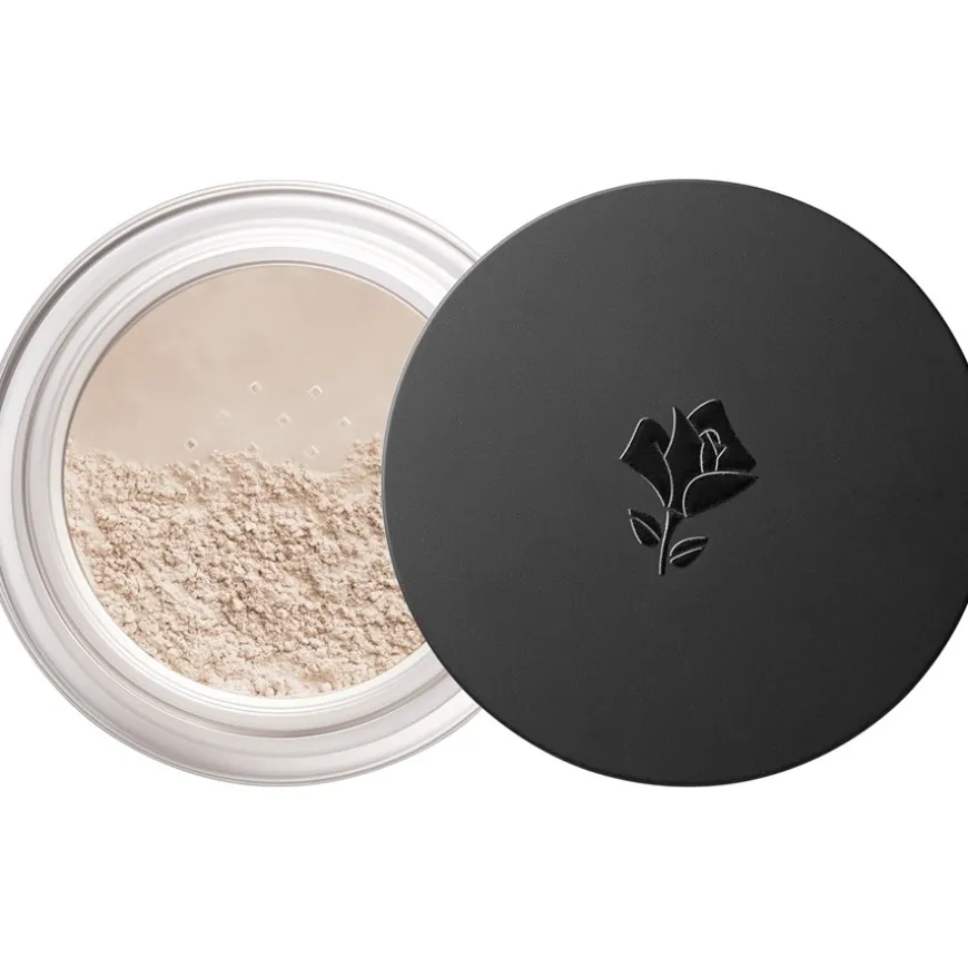 Mit einem großen Pinsel wird Anti-Glanz-Puder aufgetragen, und zwar nicht nur im Gesicht, sondern auch auf Hals und Dekolleté, um die Haut zu mattieren.