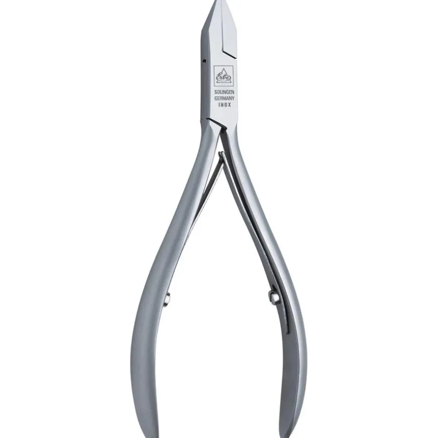Die Zange von Becker Manicure wird aus INOX-Stahl gefertigt und ist 11,5 cm lang. Das Instrument ist absolut rostfrei und kann auch in Autoklaven desinfiziert werden. Die Oberflächen sind geschliffen und mattiert. Der Zangenkopf ist schmal und spitz. Dadurch werden auch schwierige Stellen problemlos erreicht. Die Schneiden der Zange sind gehärtet und erhalten einen speziellen Schliff. Auch dicke und eingewachsene Fußnägel sind daher einfach zu entfernen. Eine Doppelfeder, die einfach eingelegt werden kann, unterstützt beim Schneiden. Die Schenkel der Nagelzange sind für eine bessere Handhabung gebogen. Die Nagelzange aus dem Hause Becker Manicure ist aufgrund der hochwertigen Verarbeitung, auch für professionelle Kosmetik- und Nagelstudios geeignet.