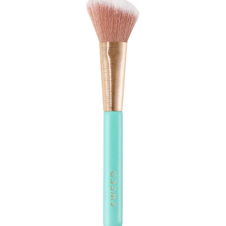 Make-up-Fans kennen das Problem, wenn die Pinsel schwer in der Hand liegen und dadurch den Auftrag von Produkten unkomfortabel machen. Mit den Pinseln von Sweed erleben Profis ein ermüdungsfreies Arbeiten, da sie mit einem kurzen Griff ausgestattet sind, der besonders angenehm in der Hand liegt. Gerade für alle, die auch beruflich Make-up gestalten, ist dies ein entscheidender Punkt. Auch optisch punktet dieser Pinsel mit seiner eleganten und doch frischen Farbgebung in Türkis und edlem Roségold.