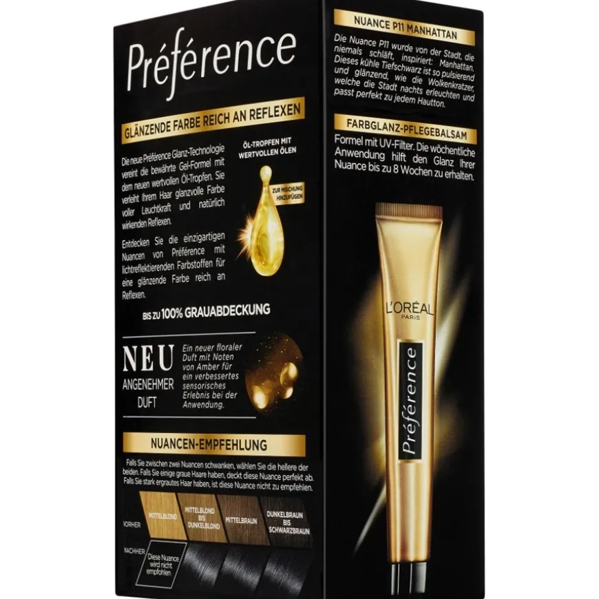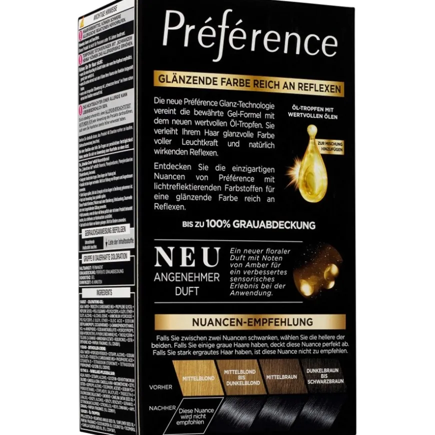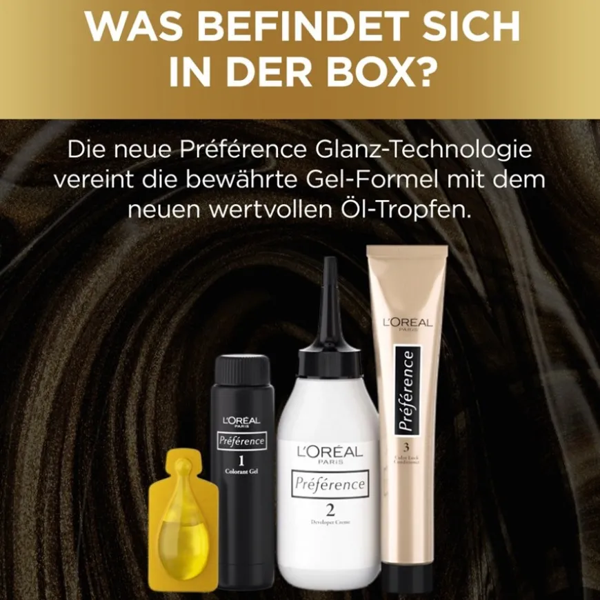 Mit der Anwendung von Préférence Permanente Glänzende Farbe lassen sich die Haare farblich auffrischen. Der Farbton enthält die Gel-Formel mit wertvollen Öltropfen. Dadurch werden natürlich wirkende Lichtreflexe erzeugt. L’Oréal Paris verwendet in seinen Haartönungen neben hochwertigen Farbpigmenten pflegende Elemente. Das Haar beeindruckt durch sein lang anhaltendes Farbergebnis und bekommt einen lebendigen sowie strahlenden Glanz. Diese Extraportion an spezieller Pflege lässt sich fühlen. Das Haar bekommt seine Spannkraft zurück und lässt sich gut frisieren. Préférence Permanente Glänzende Farbe hält zahlreiche Farbnuancen bereit, sodass für jedenHaartyp der gewünschte Farbton erzielt werden kann.