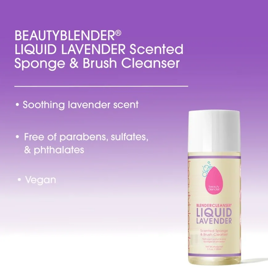 beautyblender Liquid Cleanser dient der Reinigung von Schwämmen und Beauty-Pinseln. Der Flüssigreiniger wird vor der Hautpflege auf ein Schminkutensil aufgetragen und entfernt dann sämtliche Bakterien, Verunreinigungen und Make-up-Reste. Außerdem trägt er dazu bei, dass Reinigungsschwämme fürs Gesicht möglichst lange haltbar sind. Da beautyblender Liquid Cleanser die Schwämme während der Reinigung sauber hält, kommt diese Verlängerung der Lebensdauer zustande. Der Make-up-Entferner zeichnet sich durch einen angenehmen Duft von Lavendel aus und trägt deshalb die Bezeichnung Liquid Lavender. Die vegane Lösung enthält neben Lavendelöl auch beruhigendes Kokosnussöl und nachhaltiges Palmöl. Sie ist frei von Sulfaten und Parabenen.